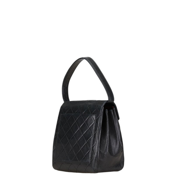 CHANEL Matelasse Coco Mark Handbag Tote Bag Black Lambskin Women\'s