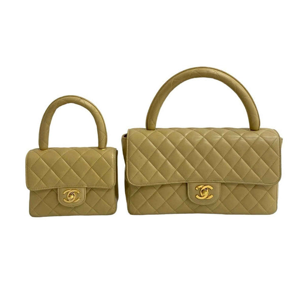 CHANEL Matelasse Coco Mark Lambskin Handbag, Beige, 30535