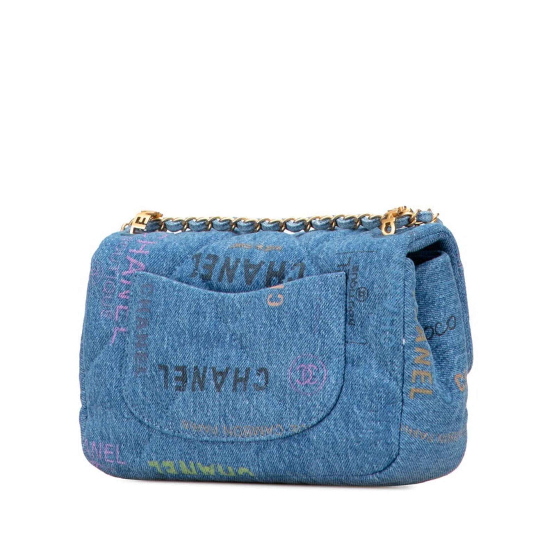 CHANEL Matelasse Coco Mark Logo Print Chain Shoulder Bag AS3134 Indigo Blue Denim Women\'s