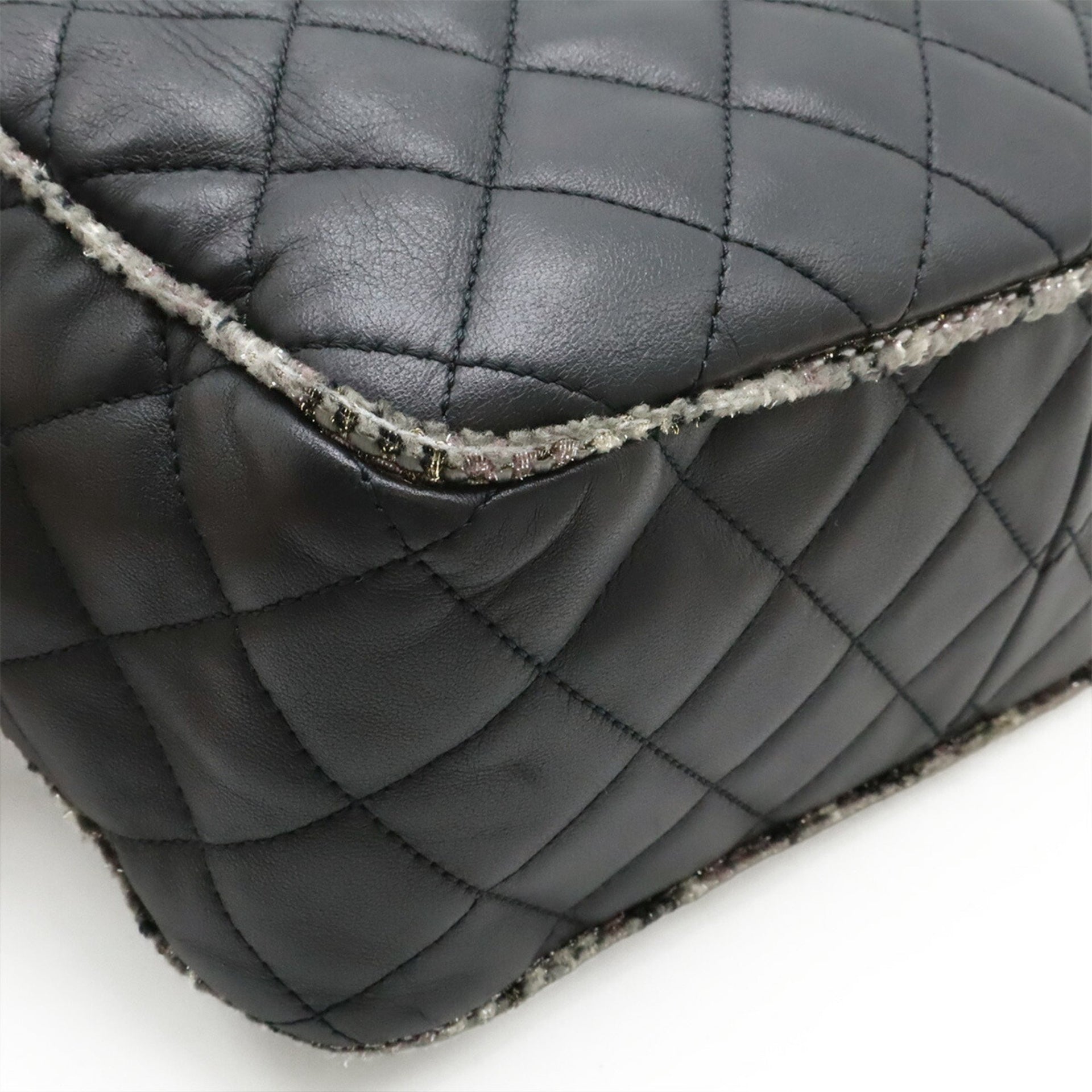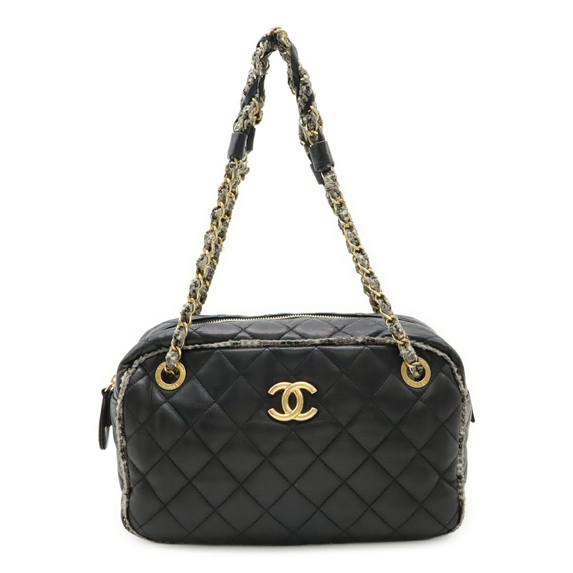 CHANEL Matelasse Coco Mark Shoulder Bag, Chain Lambskin Tweed, Black