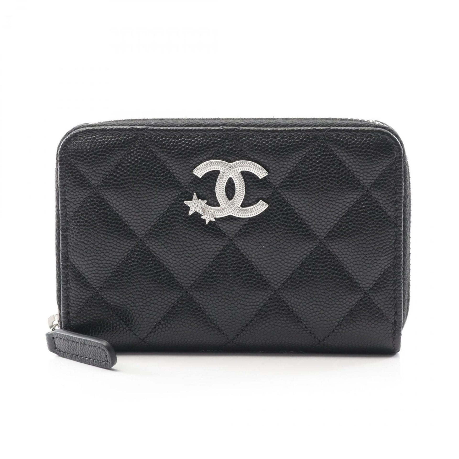 CHANEL Matelasse Coco Mark Star Round Wallet in Grained Calfskin Leather, Women\'s, Black, AP3728