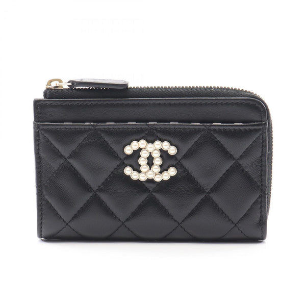 CHANEL Matelasse Coin Case Wallet, Lambskin Leather, Women\'s, Black, AP3816