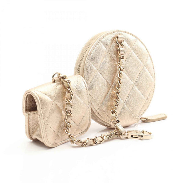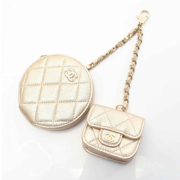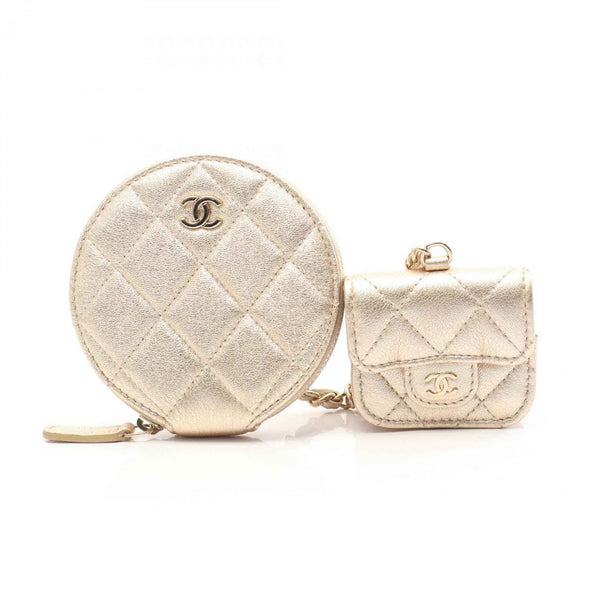 CHANEL Matelasse Coin Purse, AirPods Case, Wallet/Coin Lambskin Leather, Women\'s, Gold