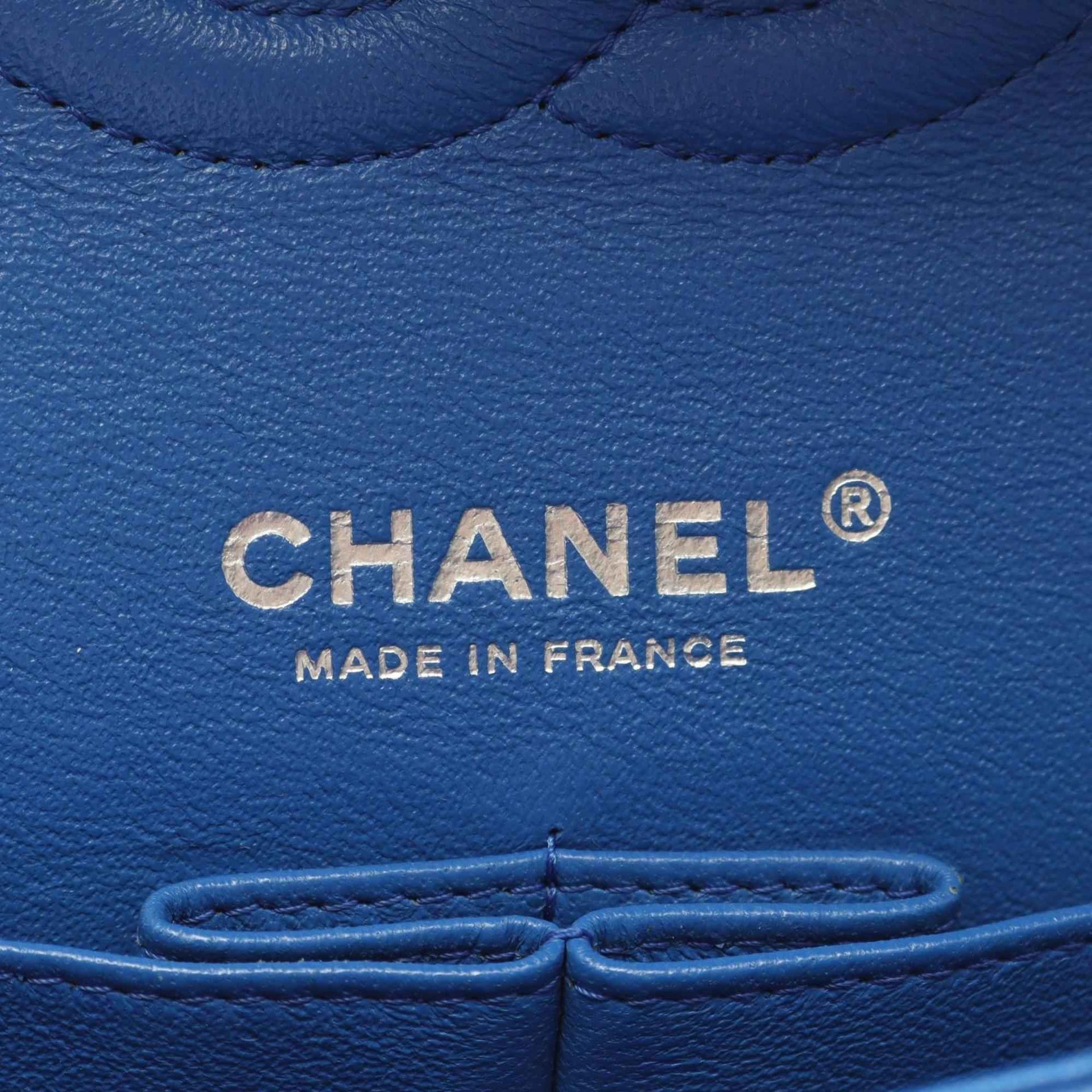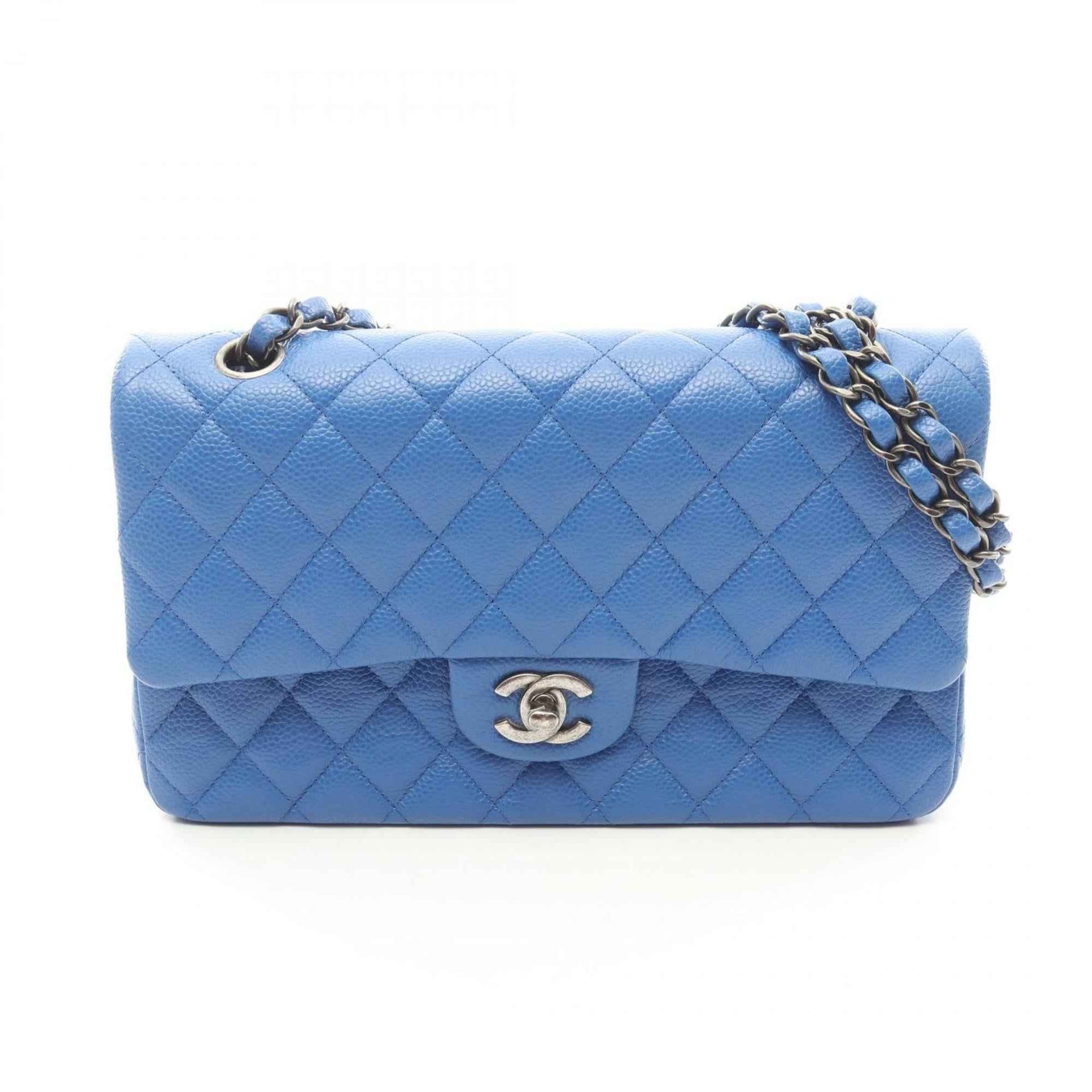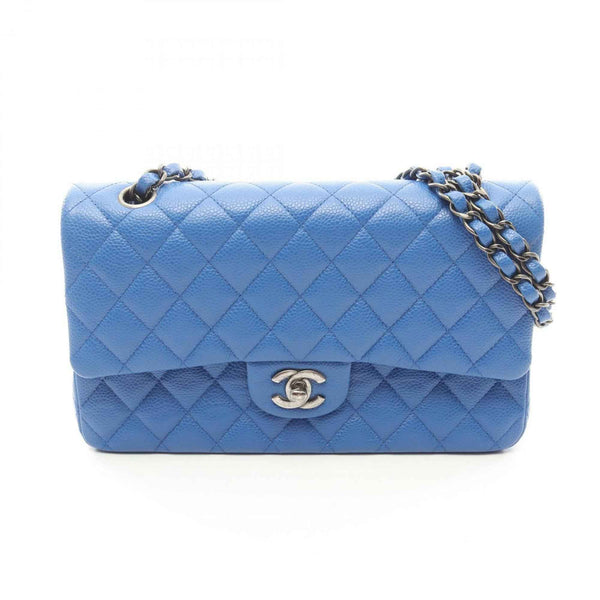 CHANEL Matelasse Double Flap Shoulder Bag in Calfskin Leather, Blue, Women\'s, A01112