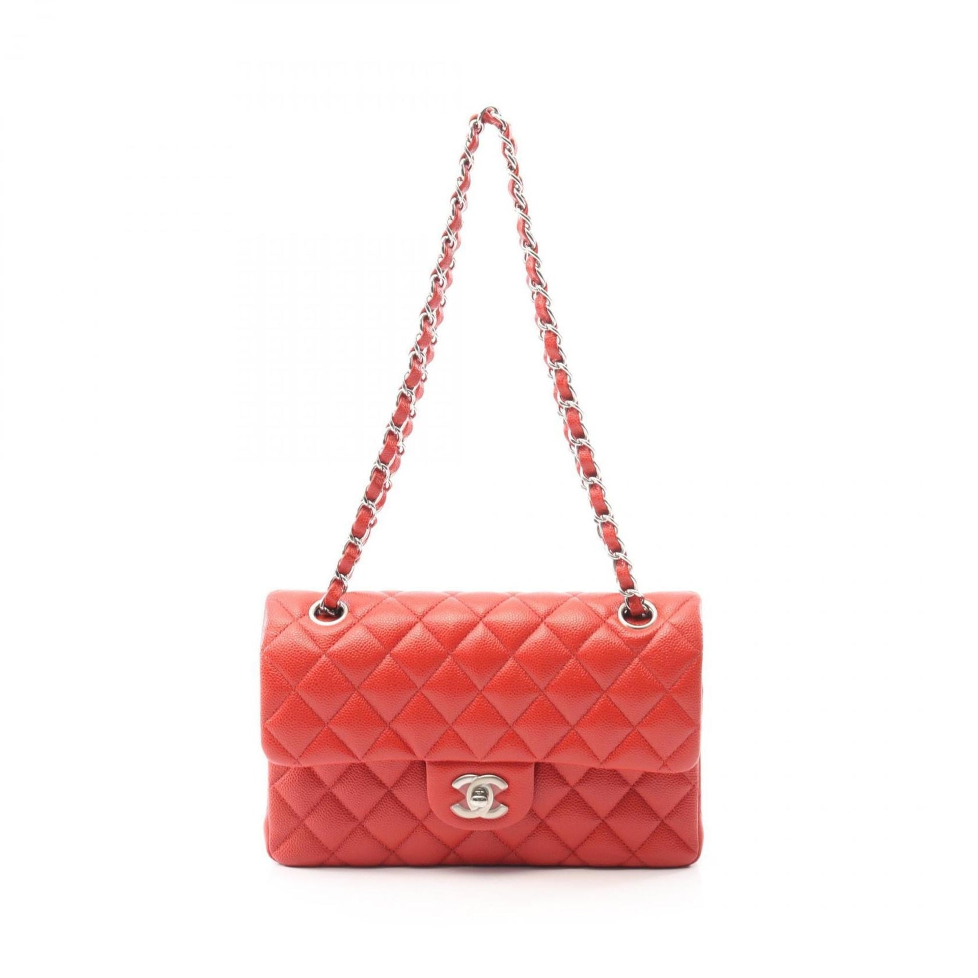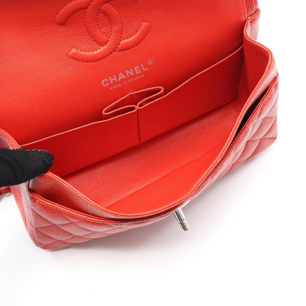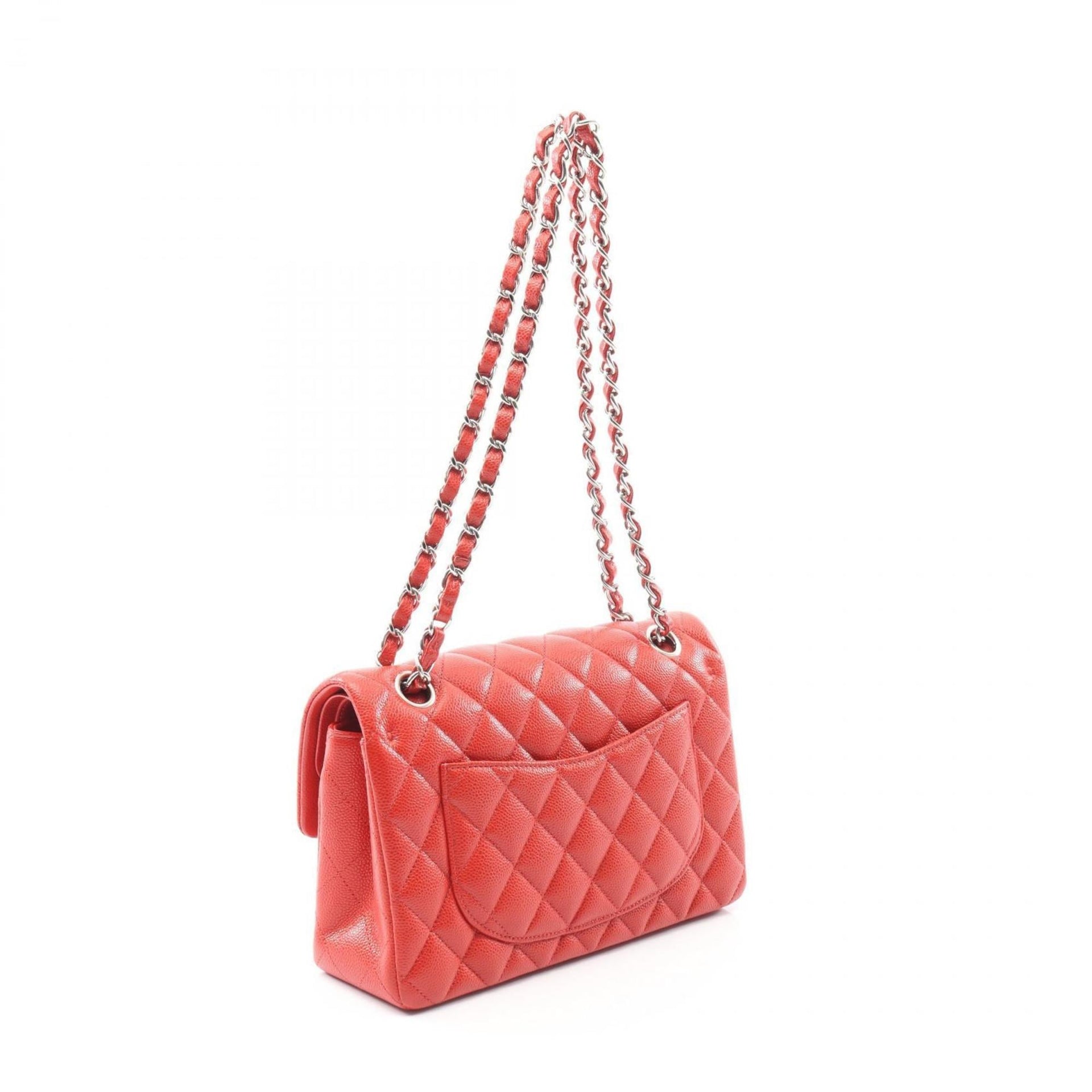 CHANEL Matelasse Double Flap Shoulder Bag in Calfskin Leather, Red