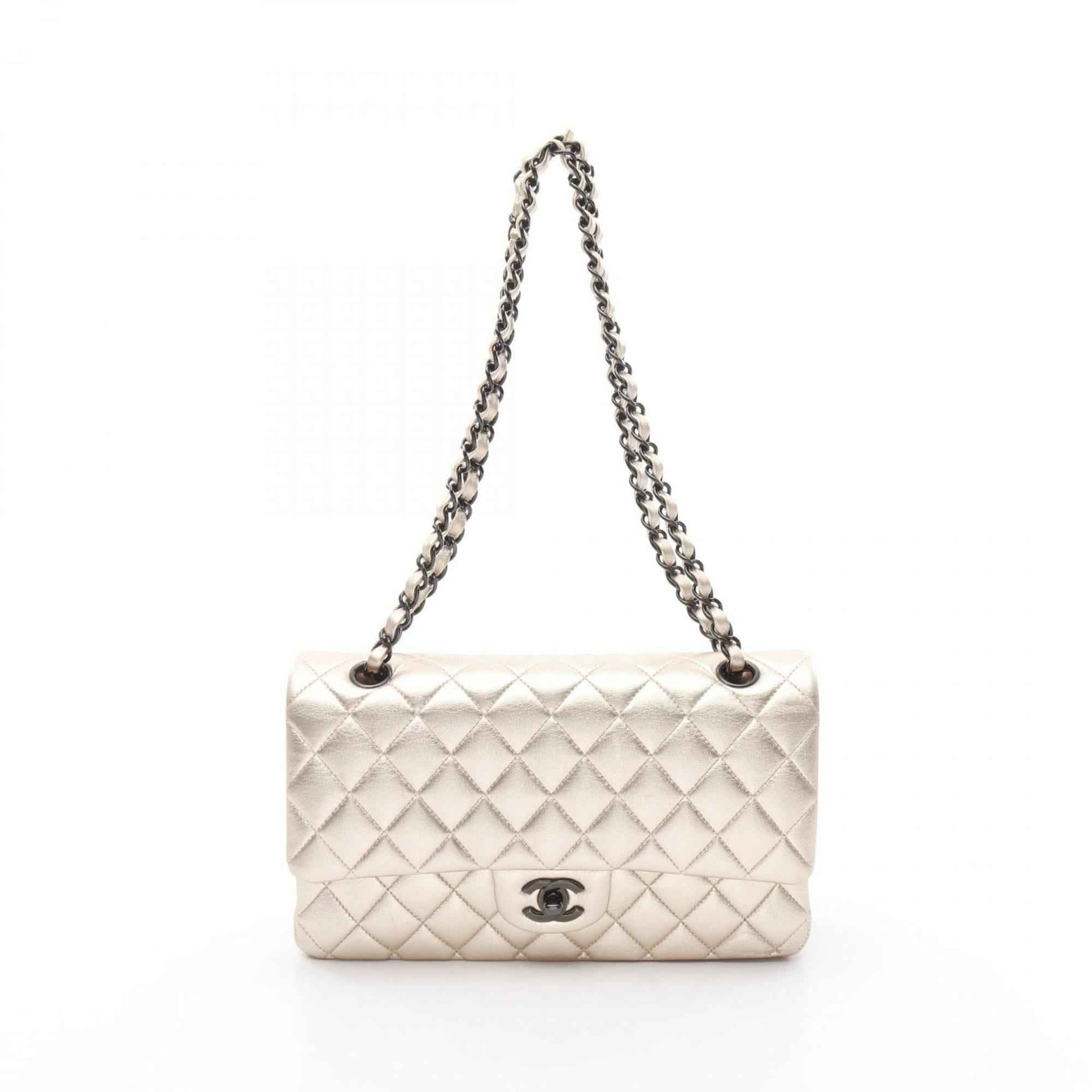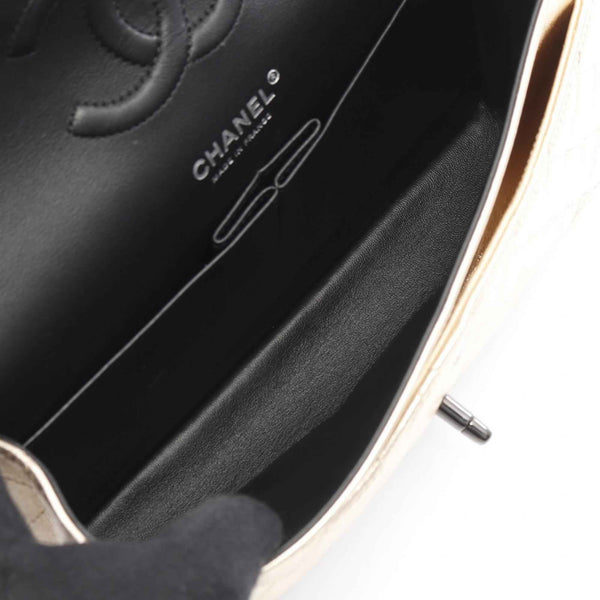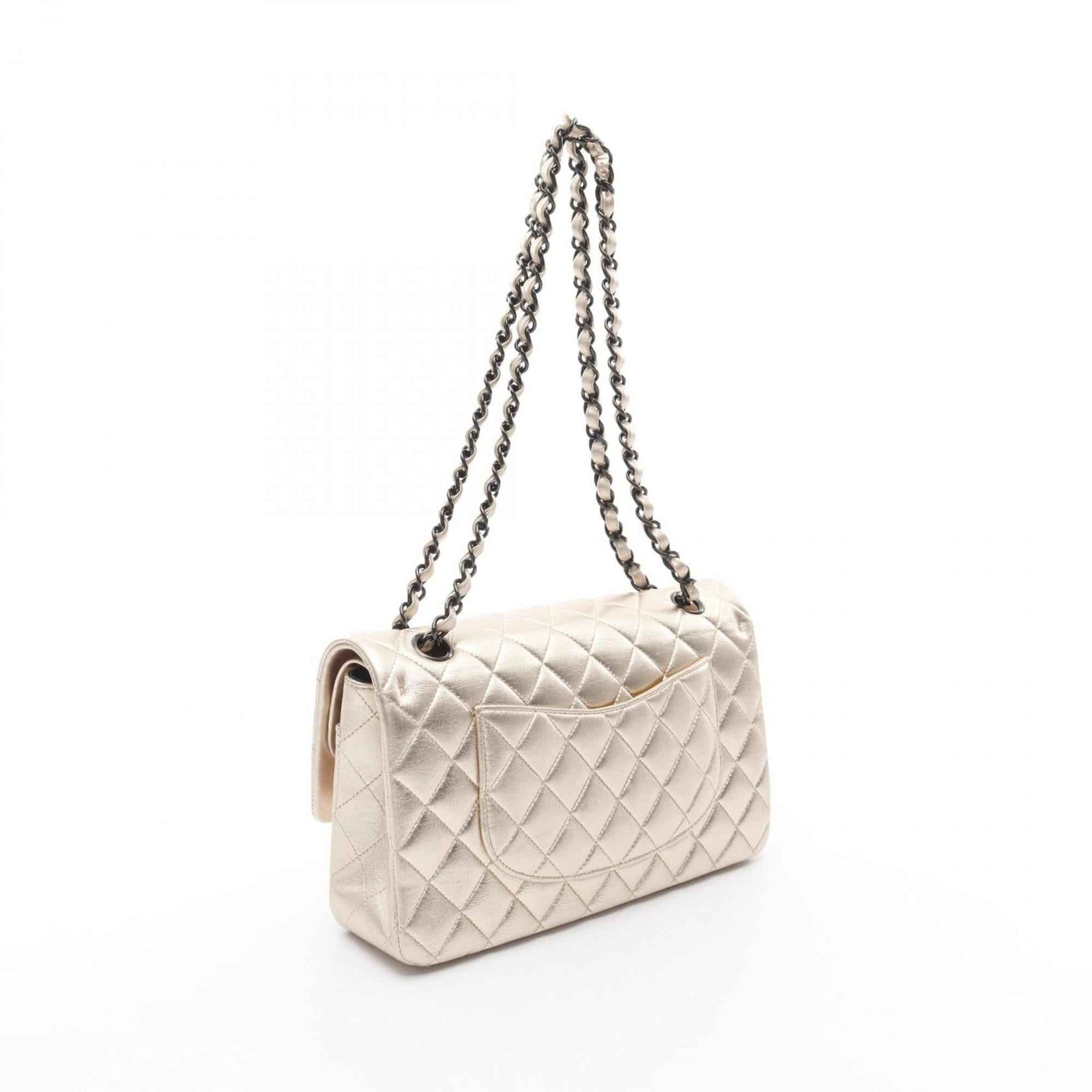 CHANEL Matelasse Double Flap Shoulder Bag in Lambskin Leather, Gold
