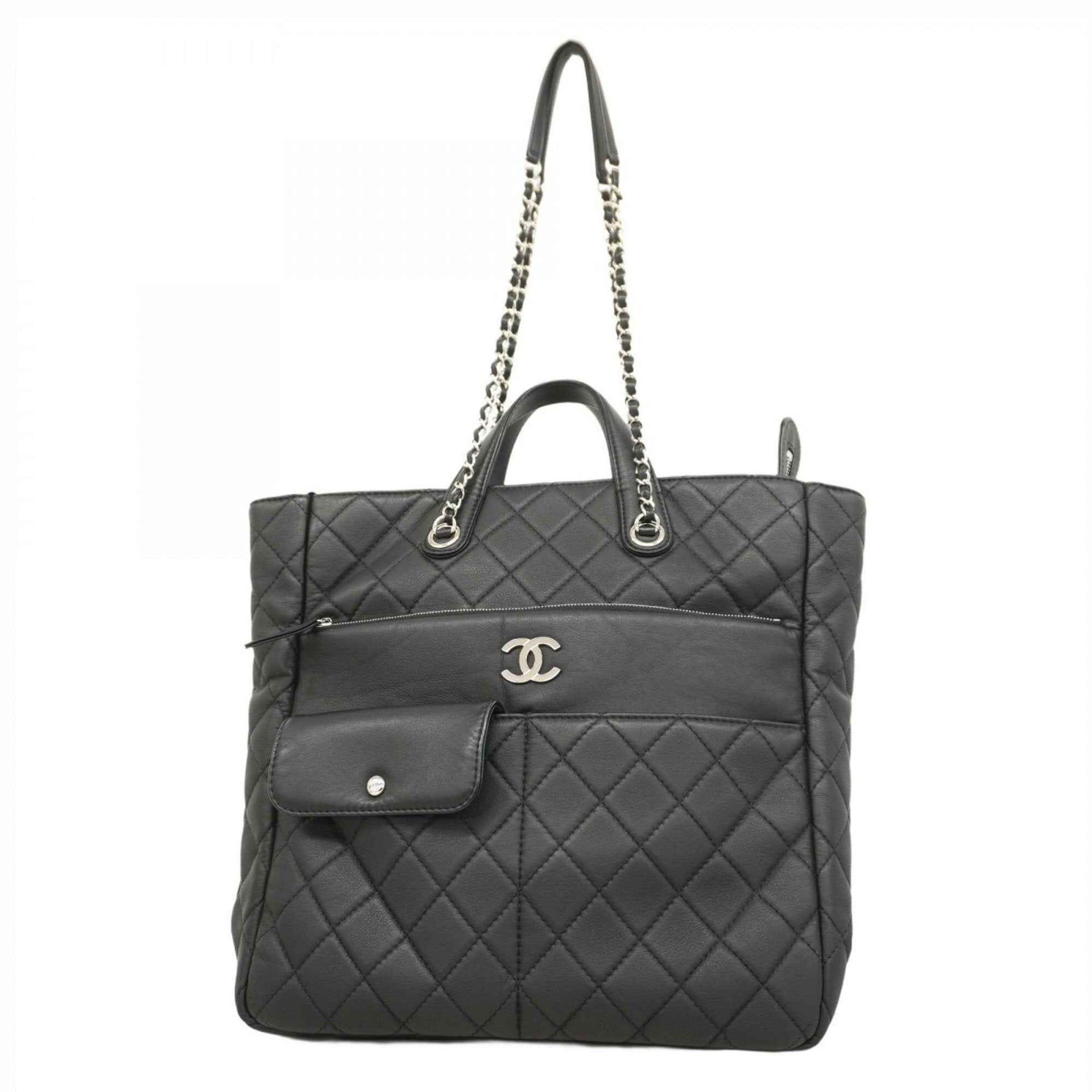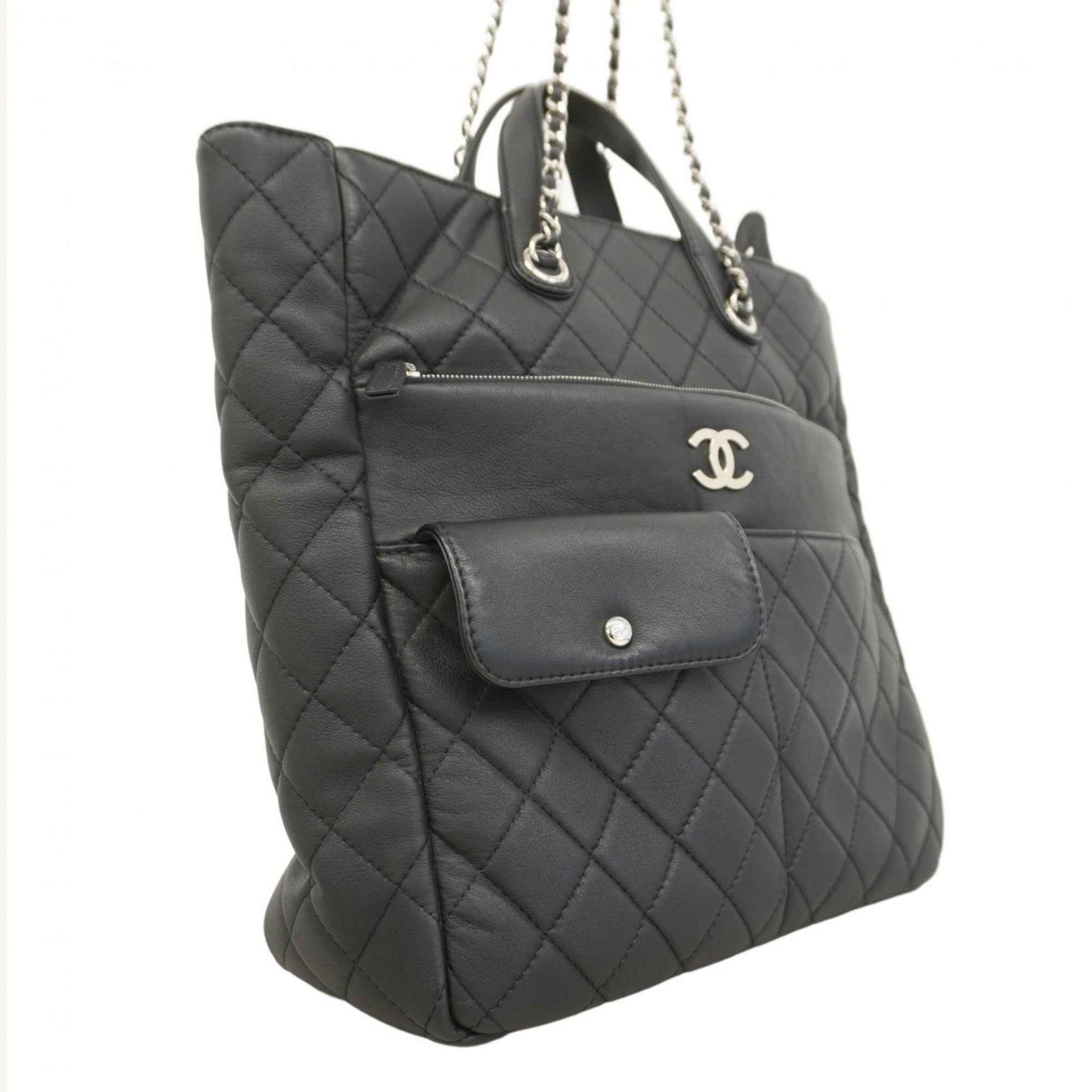 Chanel Matelasse Handbag with Chain Shoulder Strap, Black Lambskin, 2-Way Bag for Women
