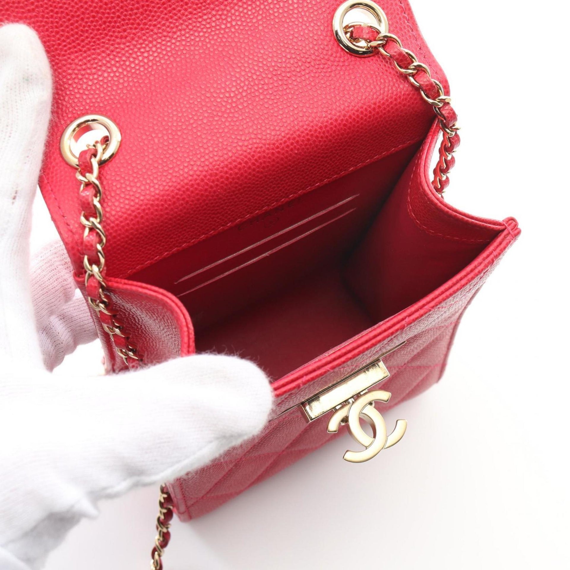 CHANEL Matelasse Phone Pouch Shoulder Bag Leather Grained Calfskin Women\'s Red