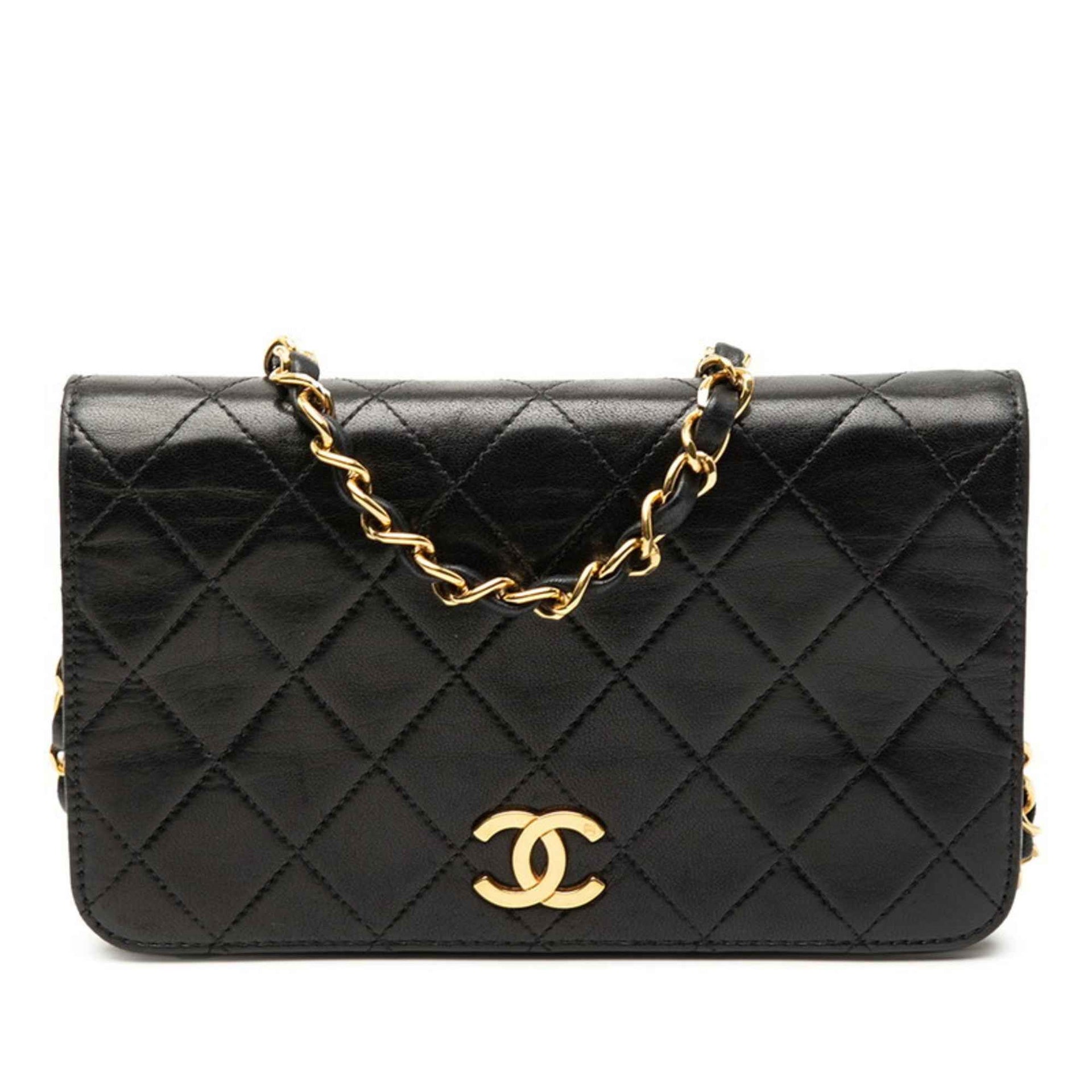 CHANEL Matelasse Push Lock Coco Mark Crossbody Chain Shoulder Bag in Black Lambskin for Women