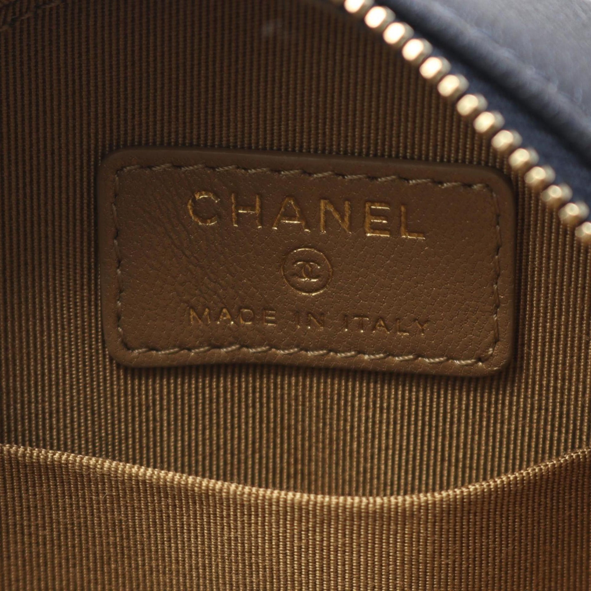 CHANEL Matelasse Round Mini Shoulder Bag in Lambskin Leather, Navy Blue, AP0999