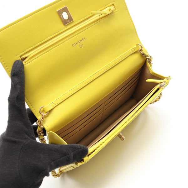 CHANEL Matelasse Shoulder Bag, Lambskin Leather, Women\'s, Yellow, AP1450