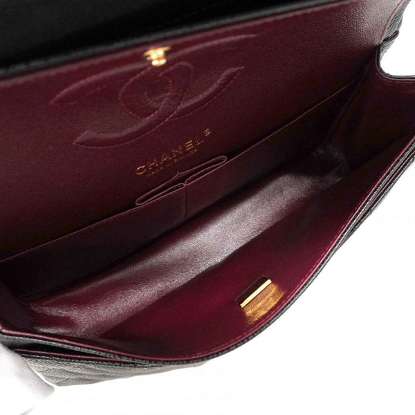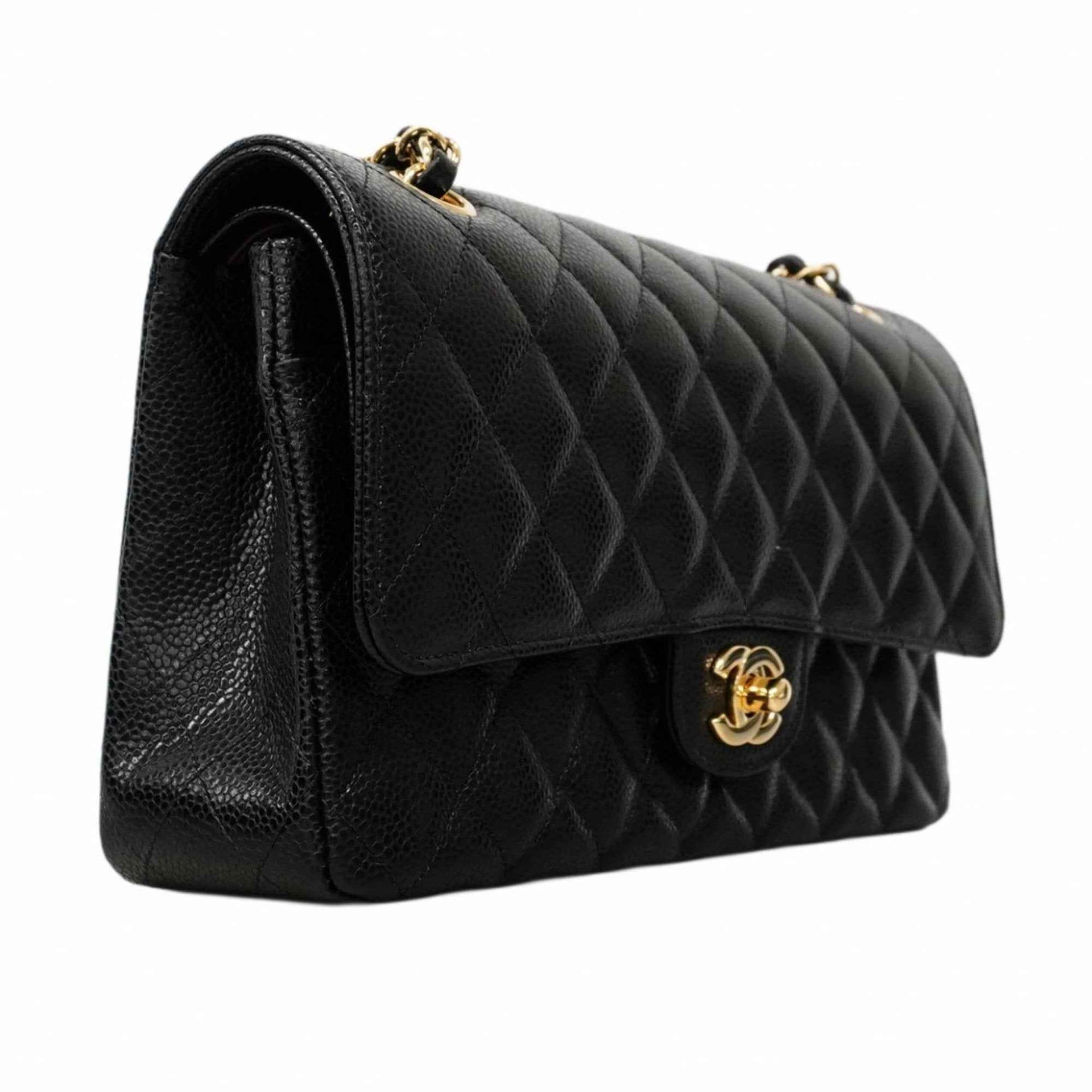 Chanel Matelasse Shoulder Bag with Double Flap and Chain, Caviar Skin, Black, Champagne, Women\'s