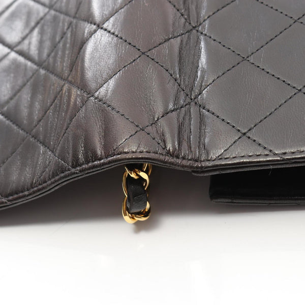 CHANEL Matelasse Single Flap Shoulder Bag in Lambskin Leather, Black
