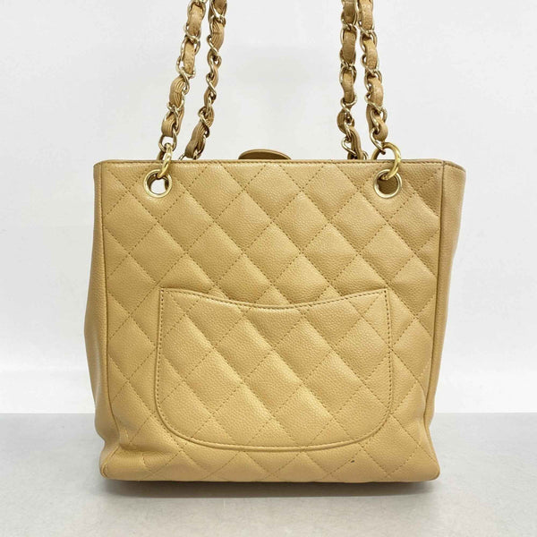 Chanel Matelasse Tote Bag with Chain Shoulder Strap, Caviar Skin, Beige, Women\'s, P1441313