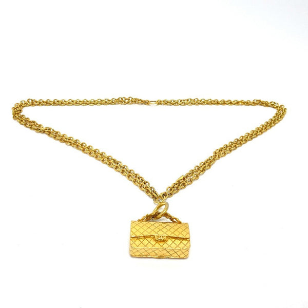 CHANEL Matelasse Vintage Pendant Necklace in a Bag Shape, GP, Women\'s, Gold