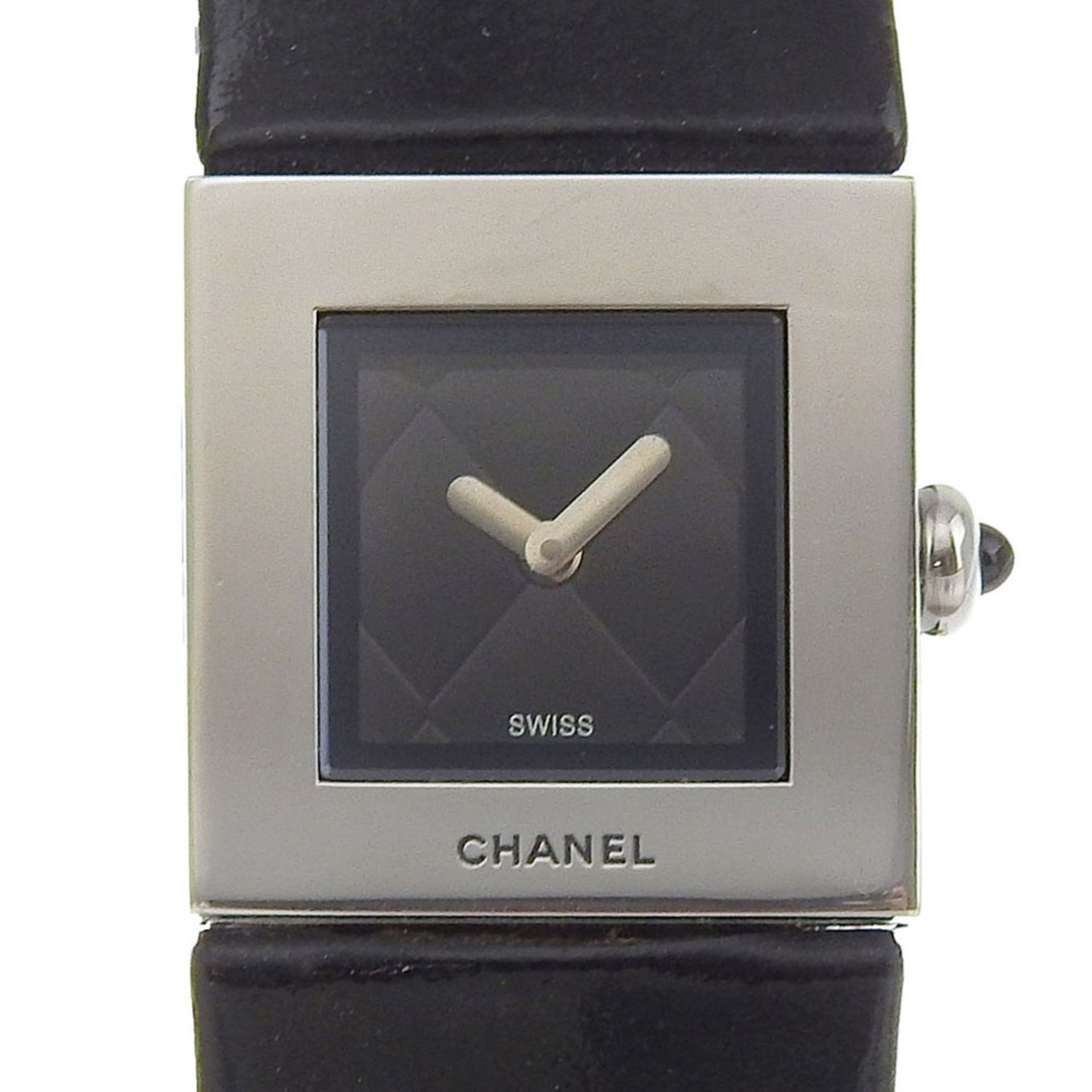 CHANEL Matelasse Watch H0116 Stainless Steel x Embossed Leather Quartz Analog Display Black Dial Women\'s