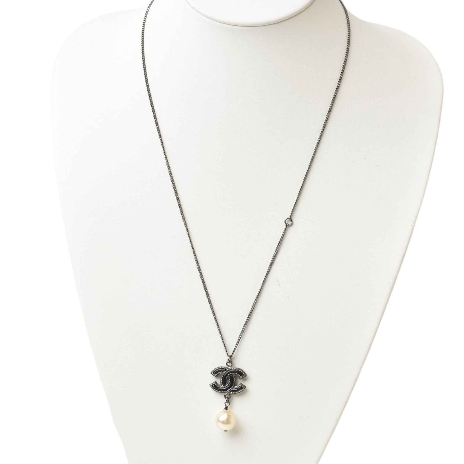 Chanel Necklace Pendant 2way CHANEL Coco Mark Pearl Motif Black Gunmetal