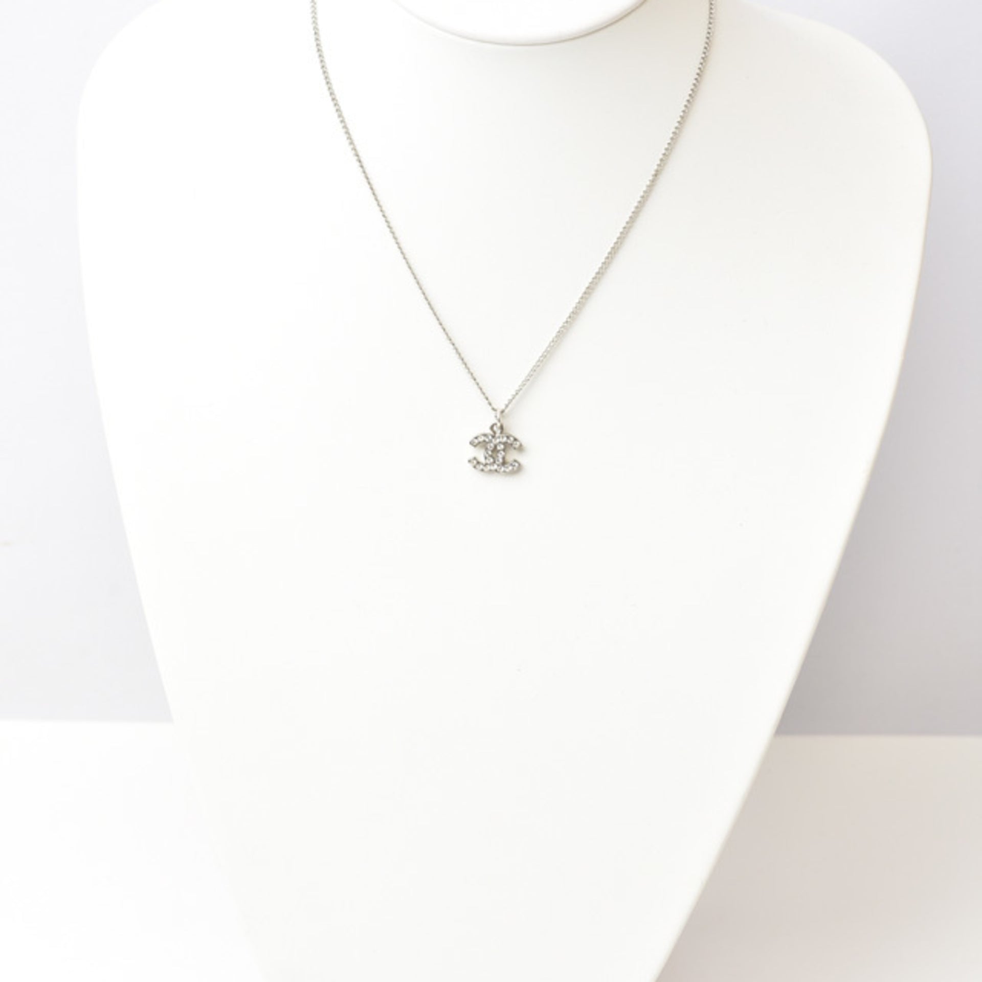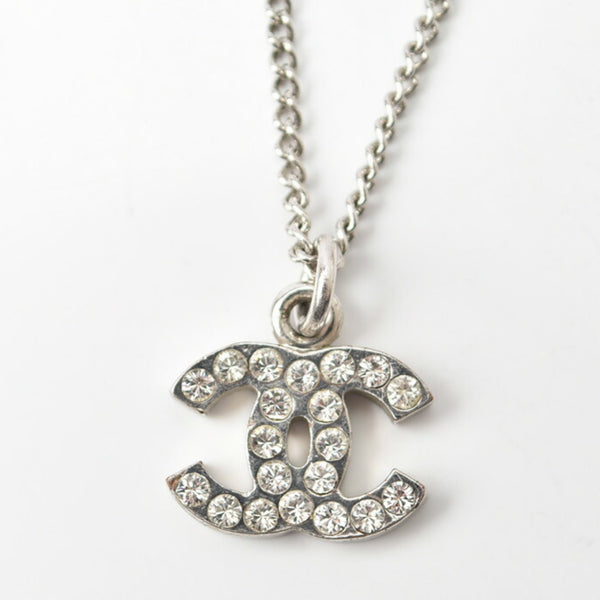 Chanel Necklace Pendant CHANEL Coco Mark CC Rhinestone Silver White