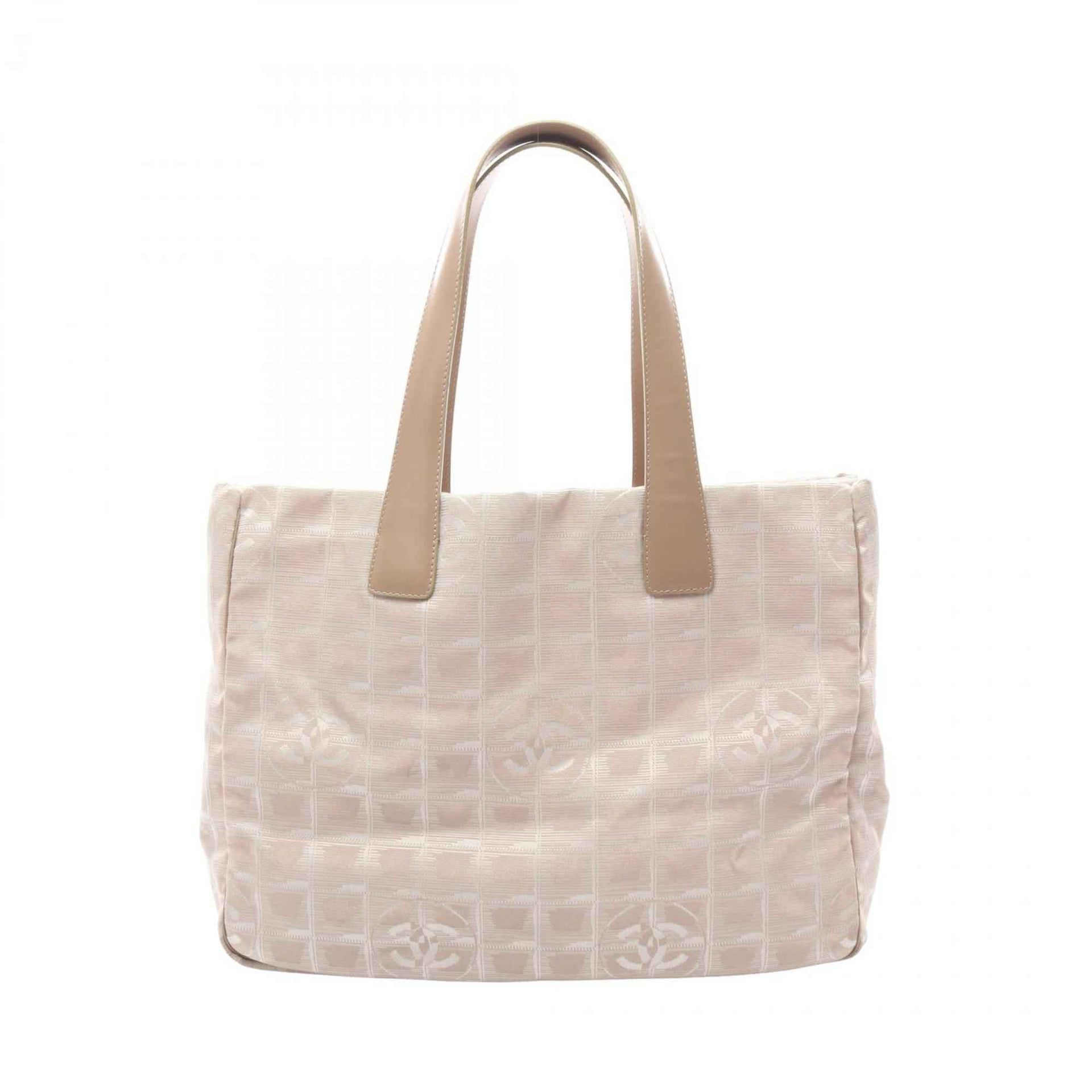 CHANEL New Travel Line MM Tote Bag, Leather, Nylon Canvas, Women\'s, Beige, A15991