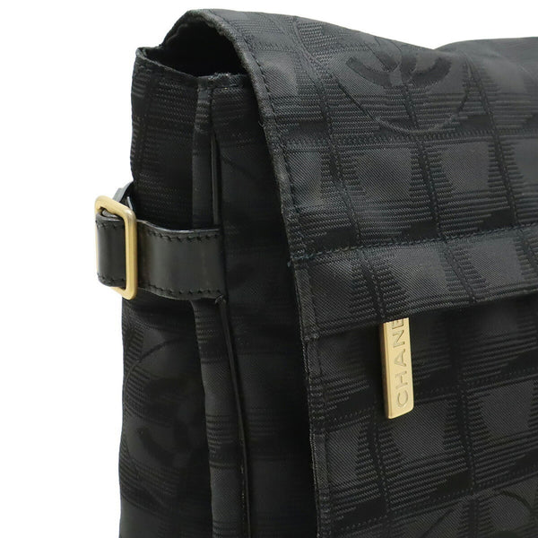 CHANEL New Travel Line Shoulder Bag in Nylon Jacquard, Black, A29348