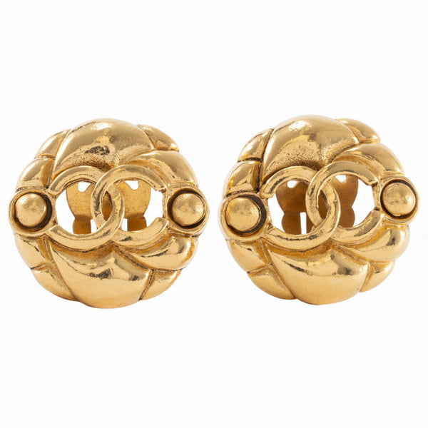 CHANEL Round Coco Mark Gold GP Clip Earrings