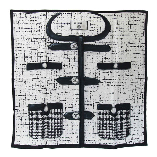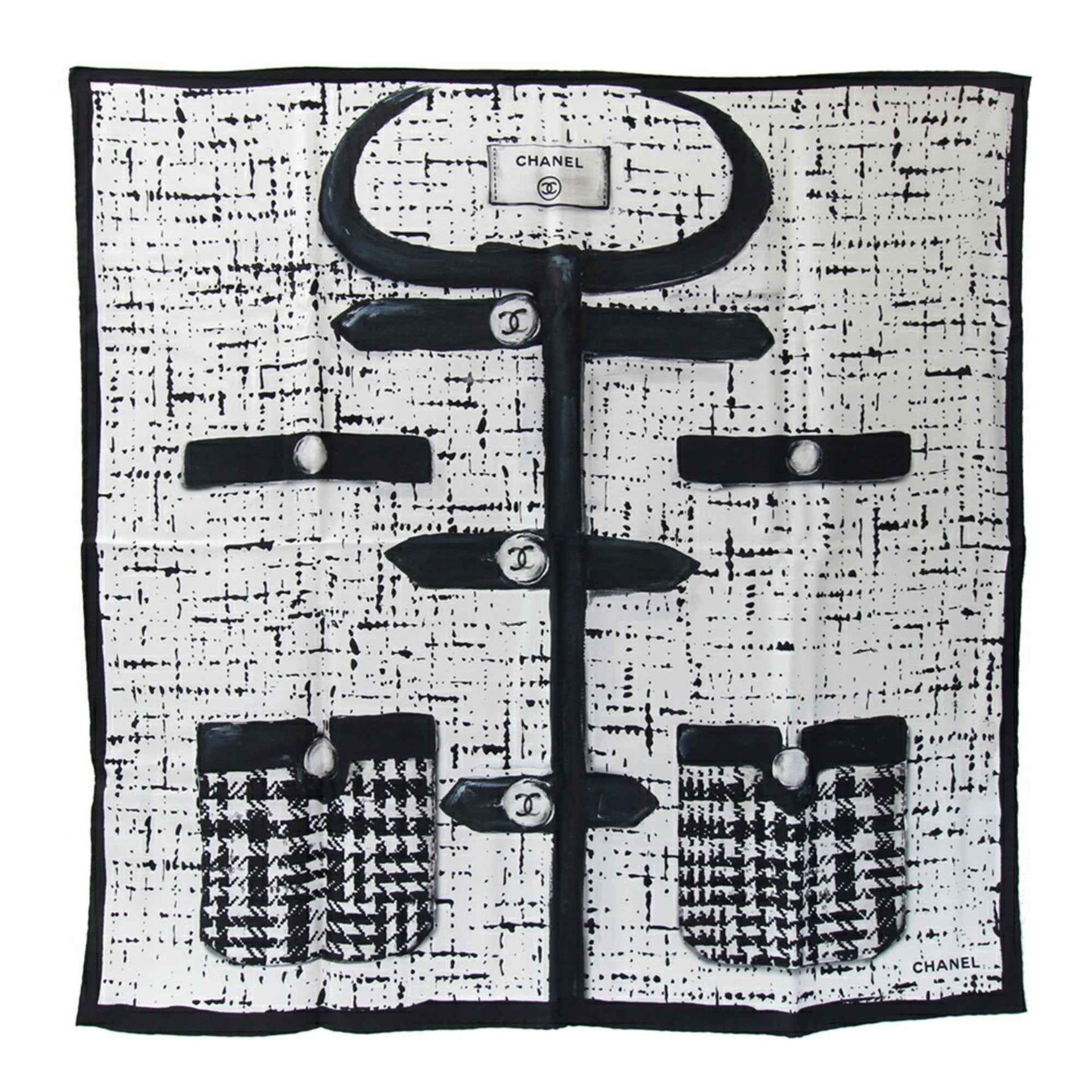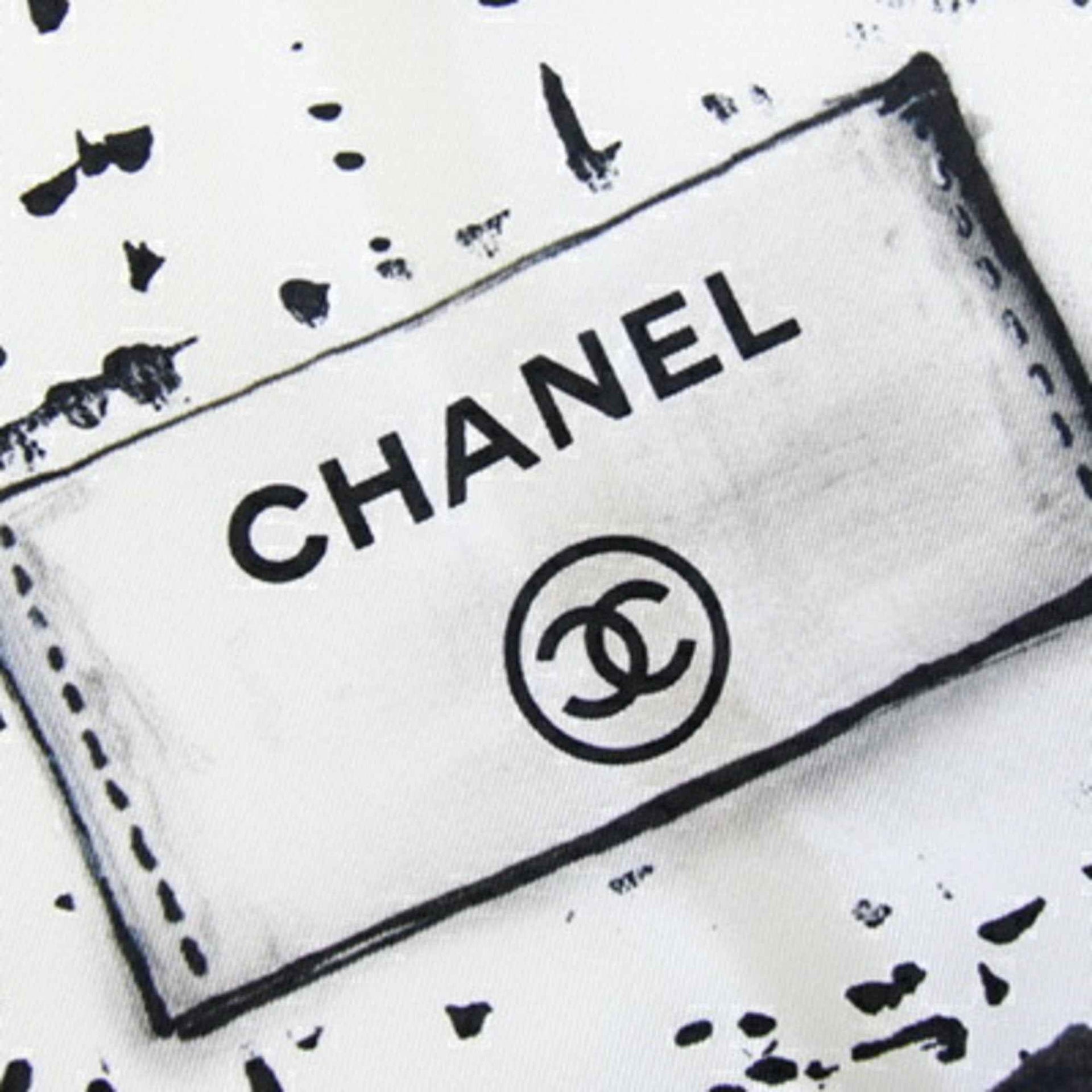 Chanel scarf, muffler, white and black, 100% silk, large size, stole, Coco mark, women\'s, CHANEL