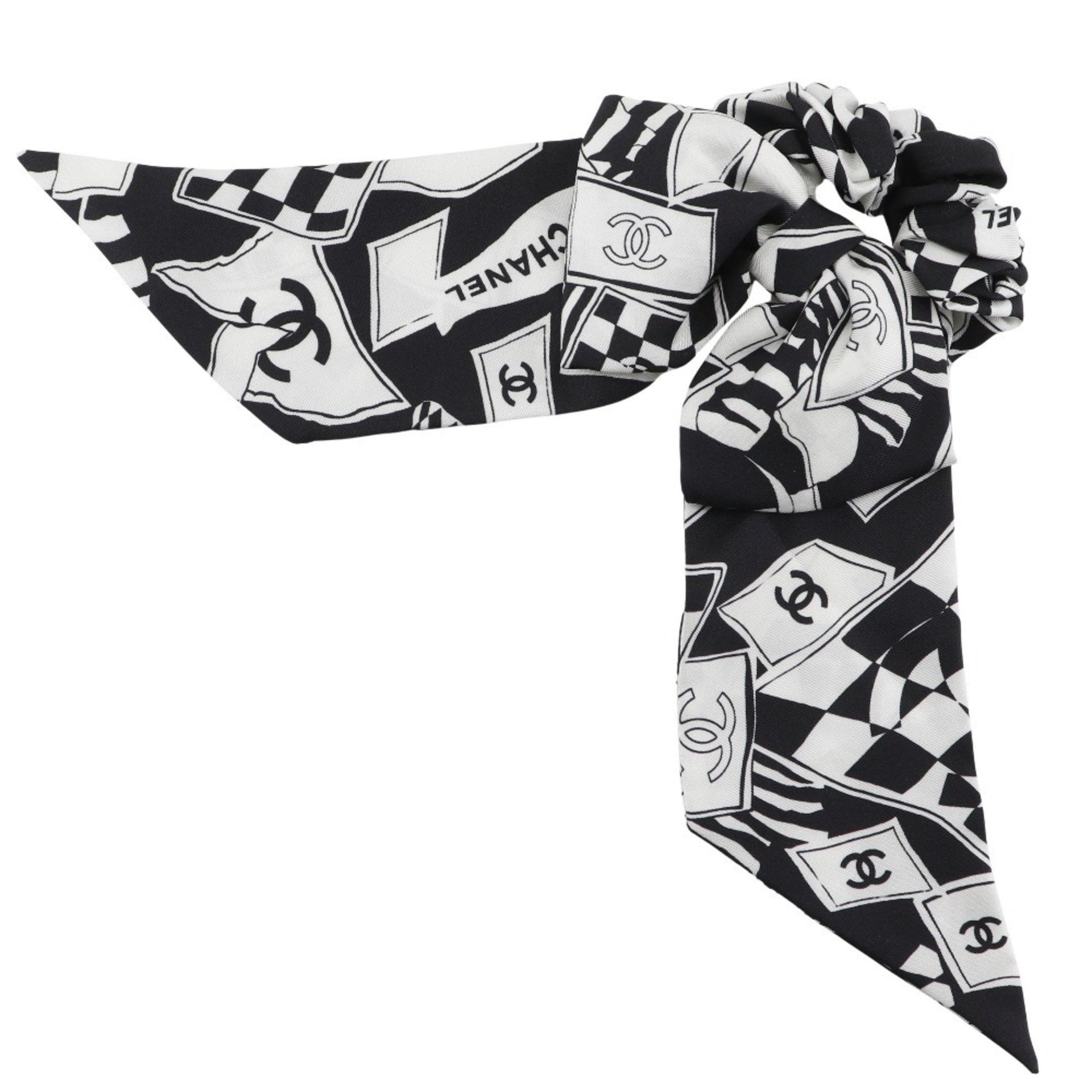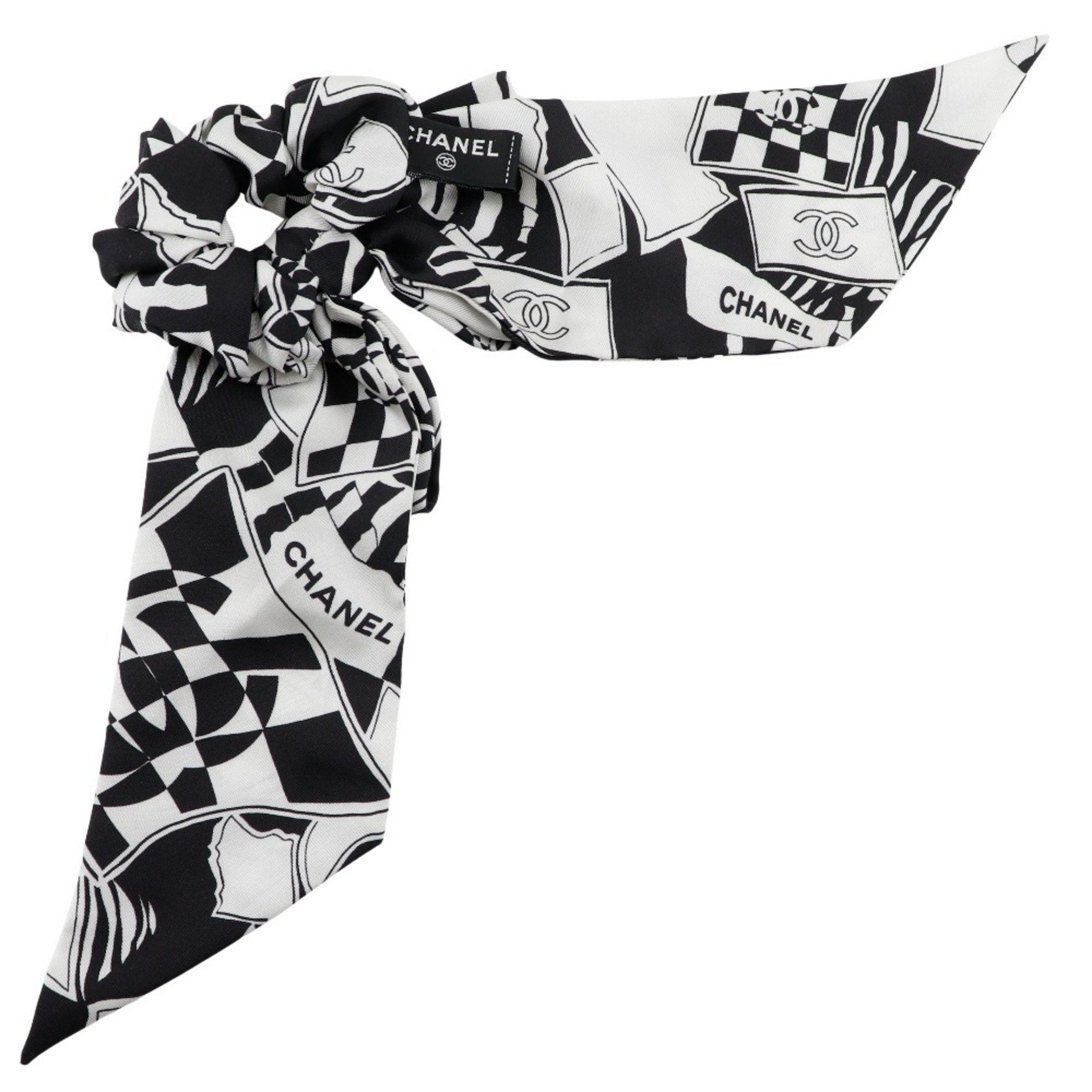 CHANEL Scrunchie with Coco Mark Ribbon, Silk, Black/White, Women\'s