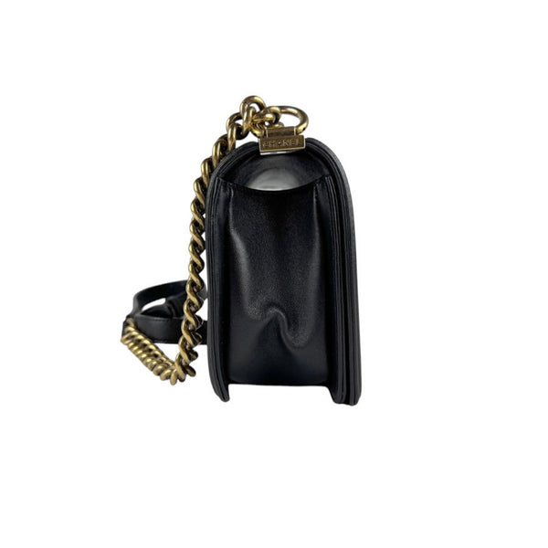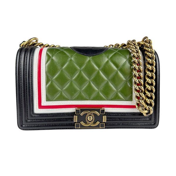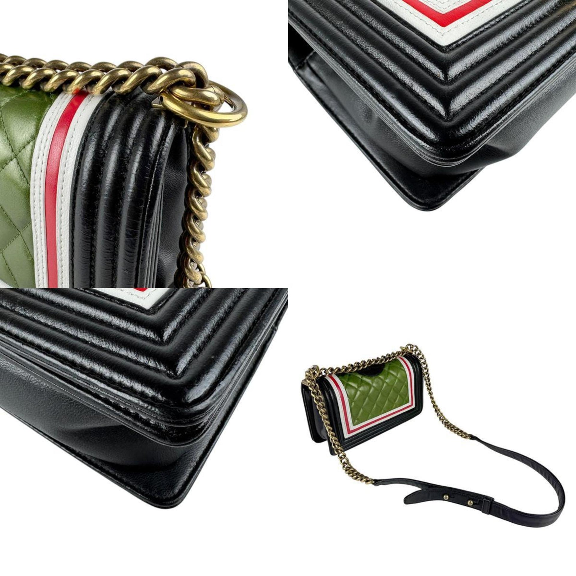 CHANEL Shoulder Bag Boy Chanel Leather Green Black Gold Women\'s z4558