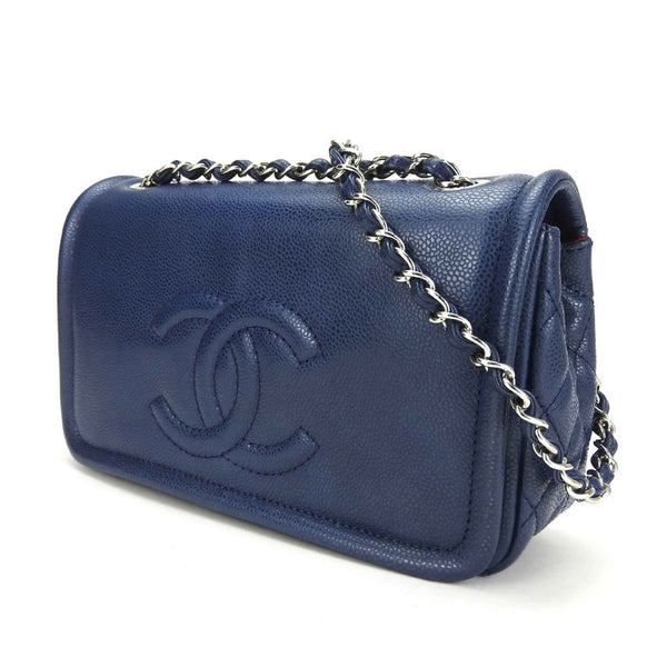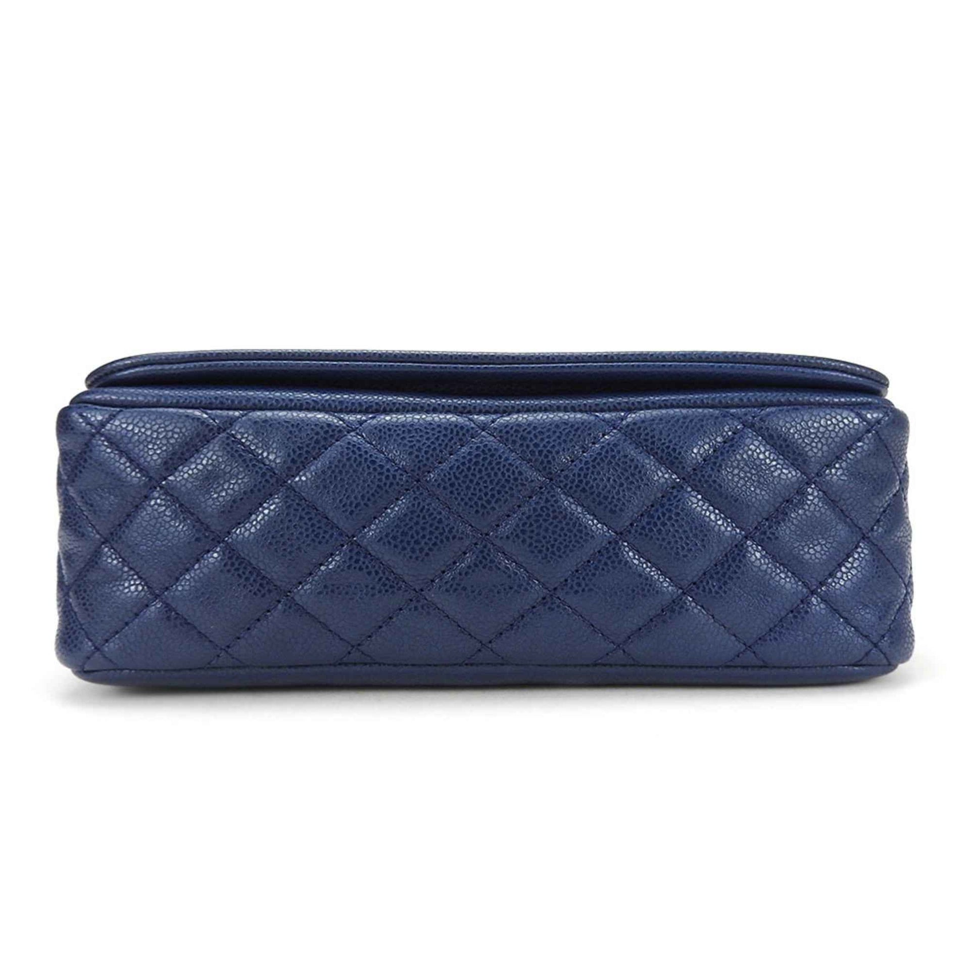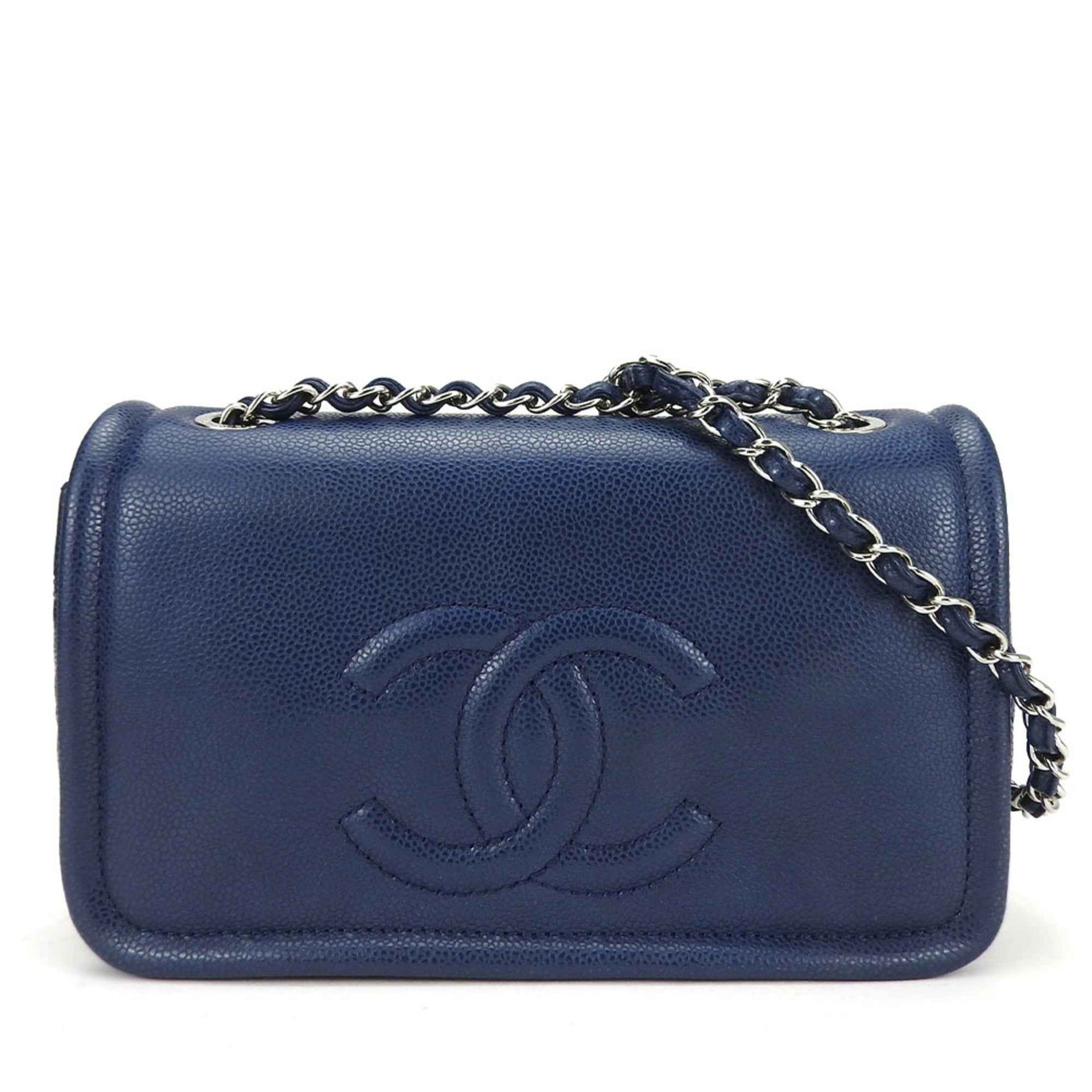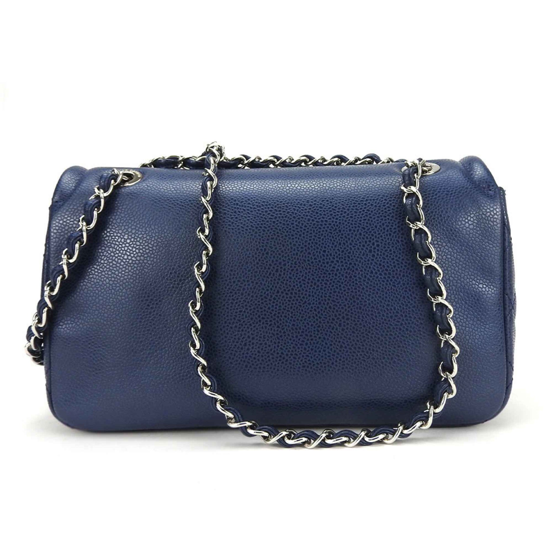 Chanel Shoulder Bag Matelasse Caviar Skin Navy Deca Coco Double Chain 13 Series Women\'s CHANEL