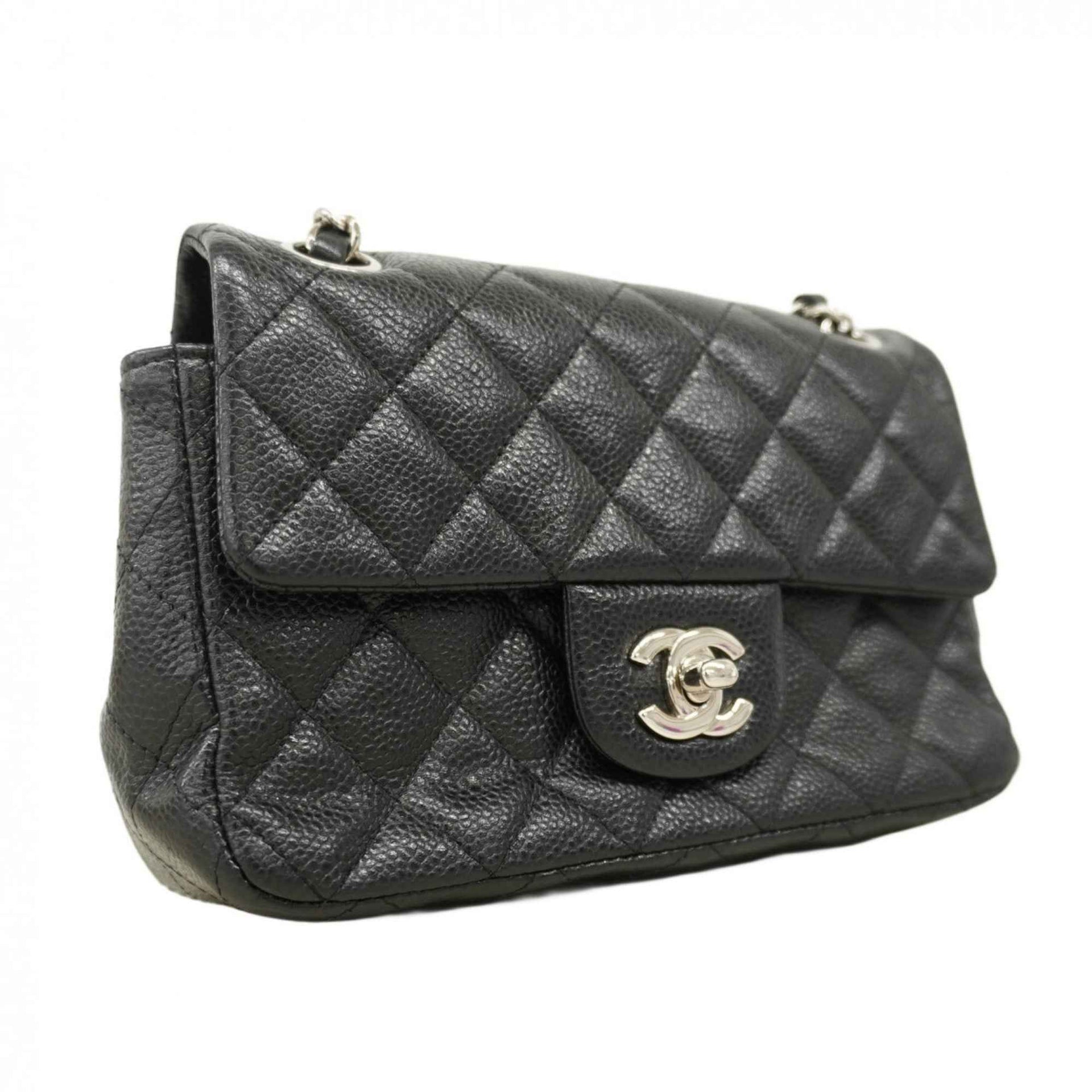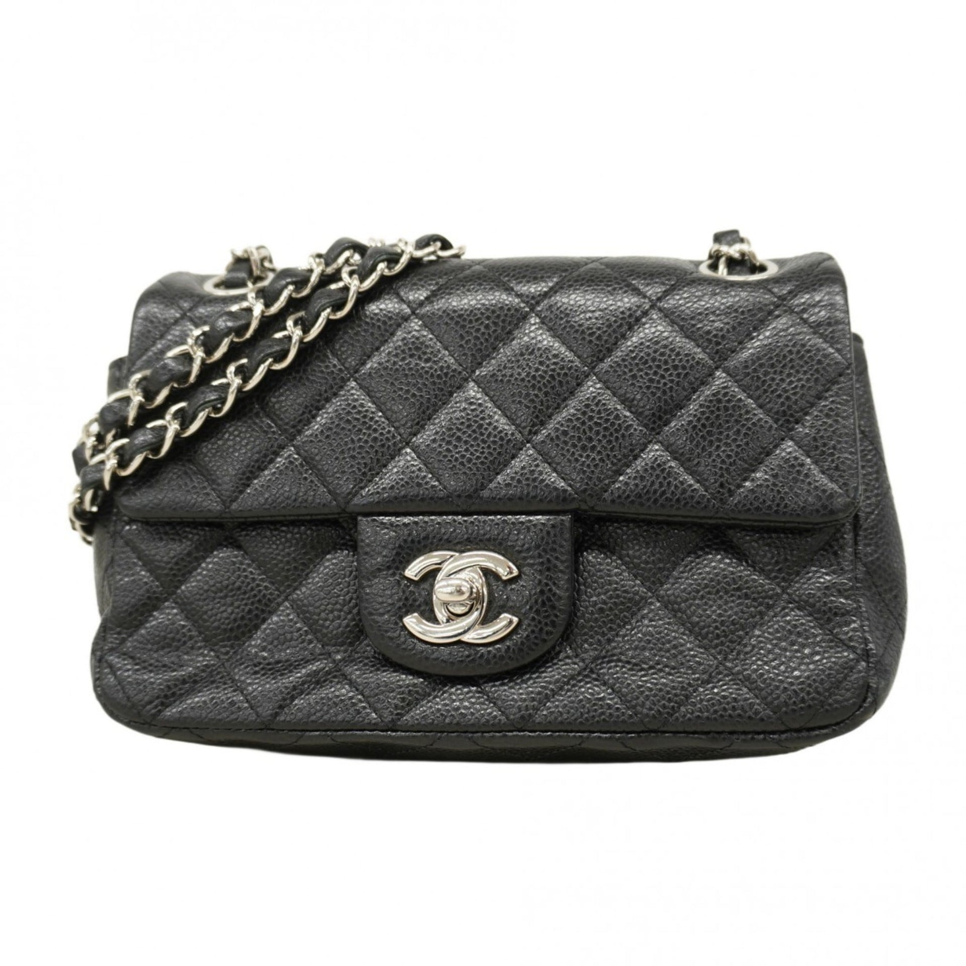 Chanel Shoulder Bag Matelasse W Chain Caviar Skin Black Women\'s