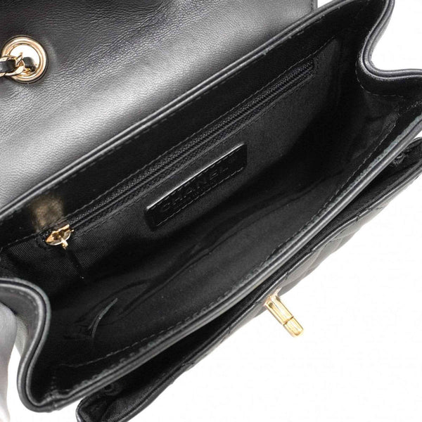 Chanel Shoulder Bag Matelasse W Chain Lambskin Black Champagne Women\'s