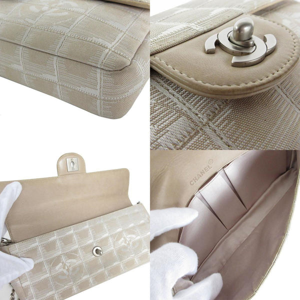 CHANEL Shoulder Bag New Travel Line Nylon Jacquard Beige Silver Women\'s s0629g