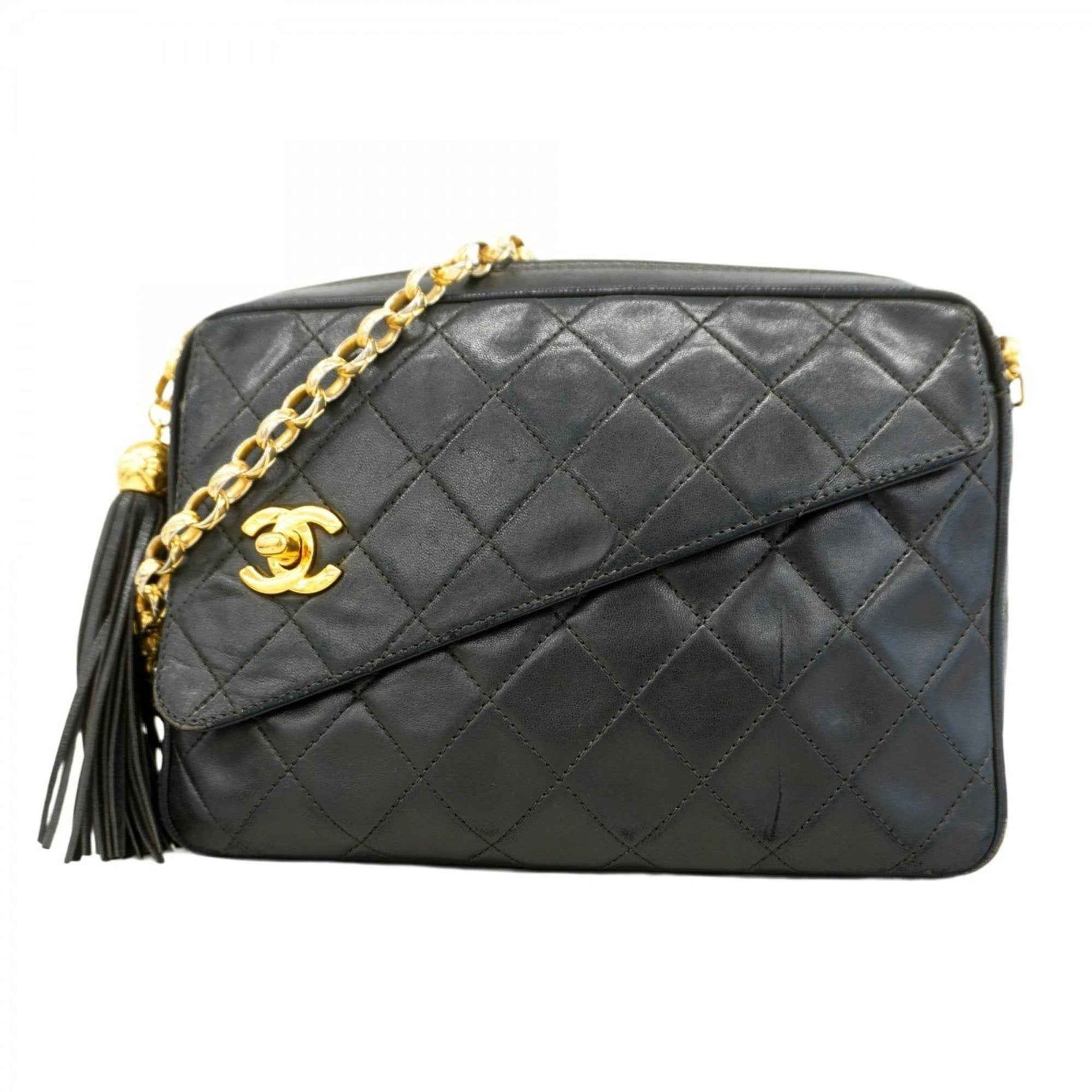Chanel Shoulder Bag with Matelasse Chain, Lambskin, Black, Women\'s, P1515724