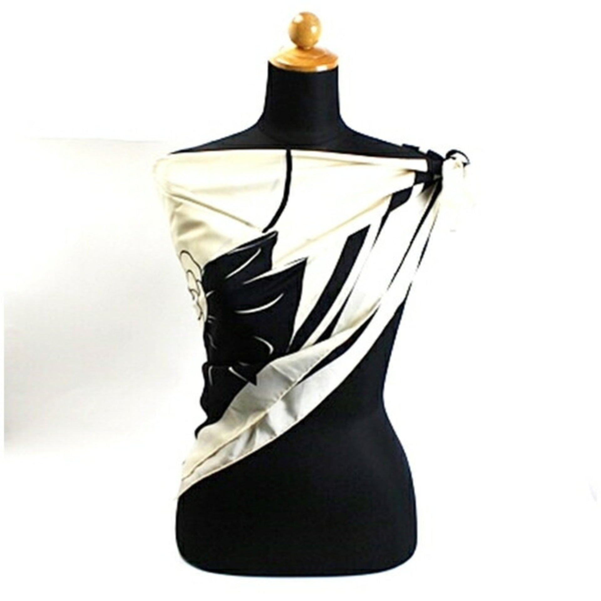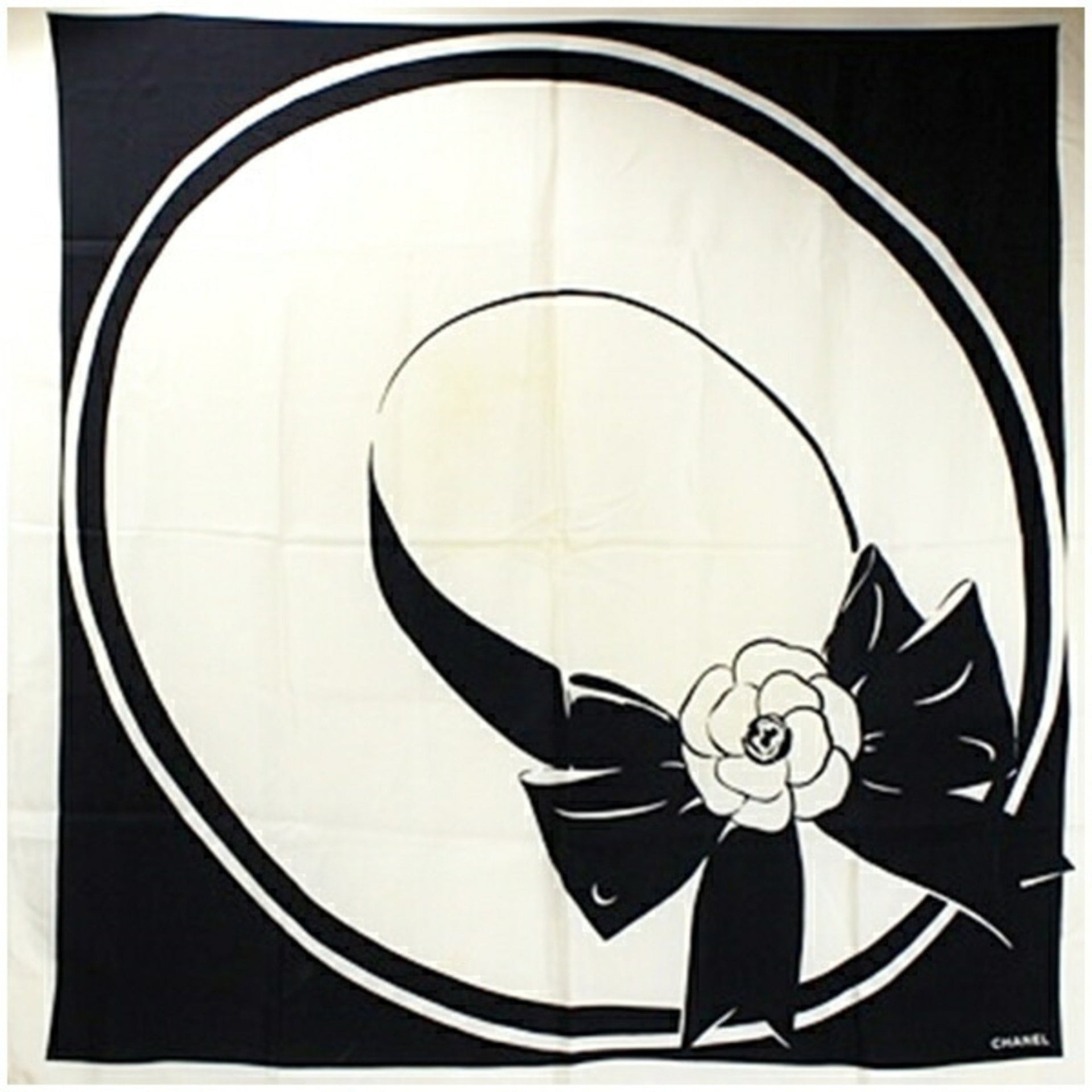 CHANEL Silk Scarf Muffler Camellia Ivory x Black Women\'s