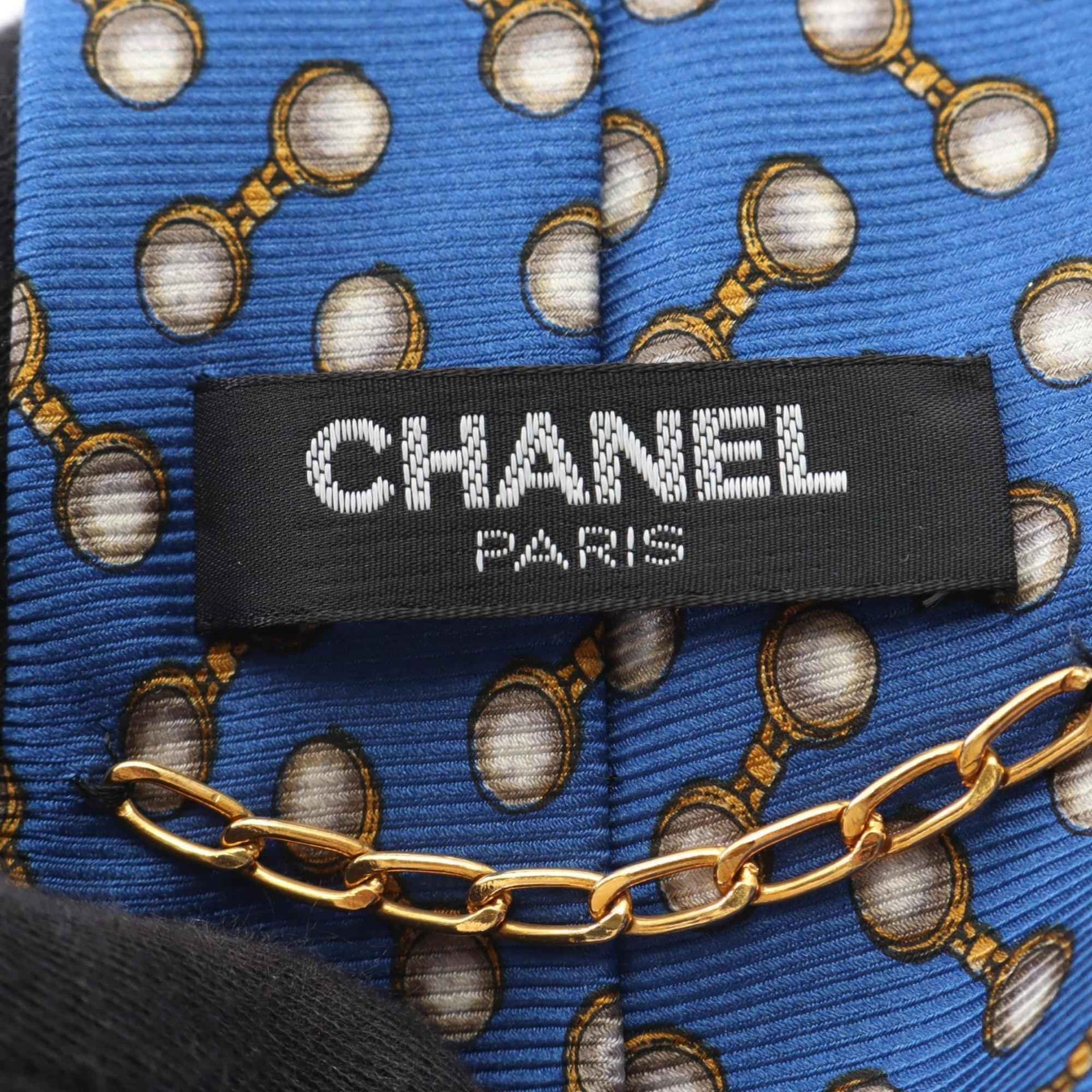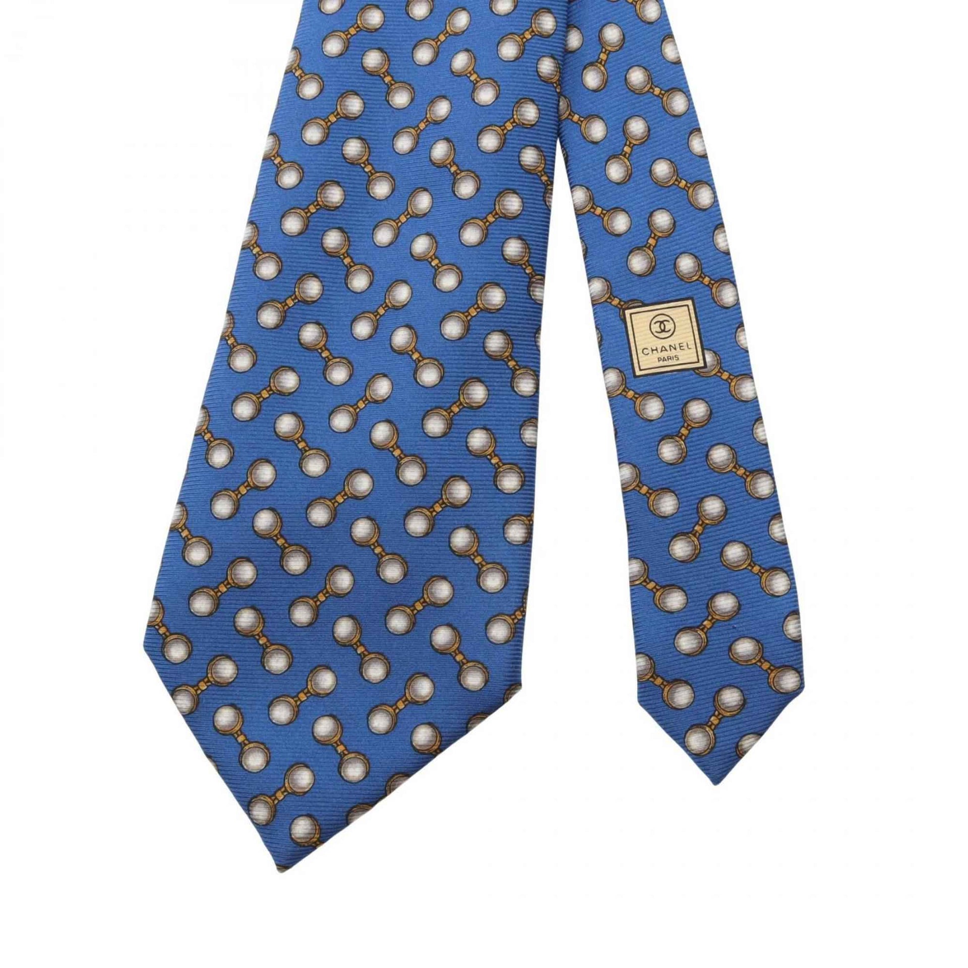 CHANEL Silk Tie for Men, Blue, Yellow, Gray