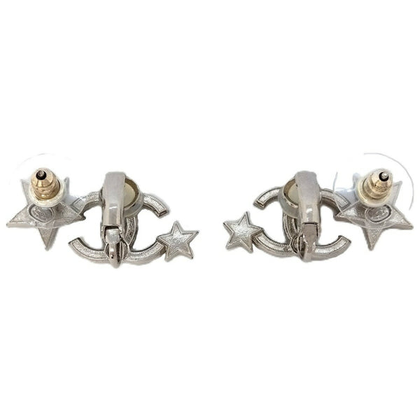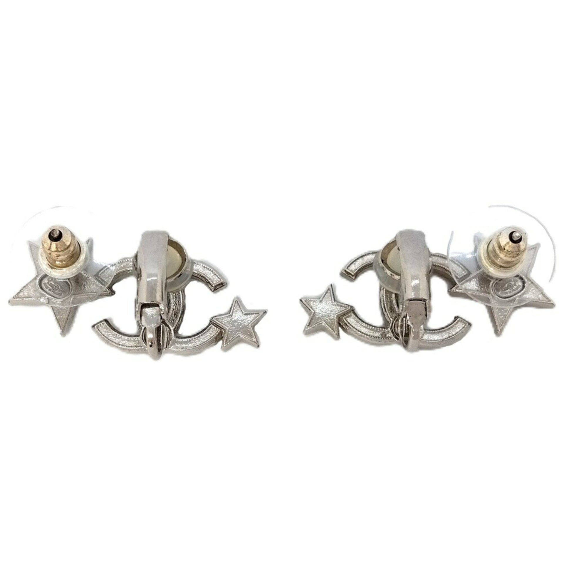 CHANEL Silver Coco Mark Star Rhinestone Earrings A23K