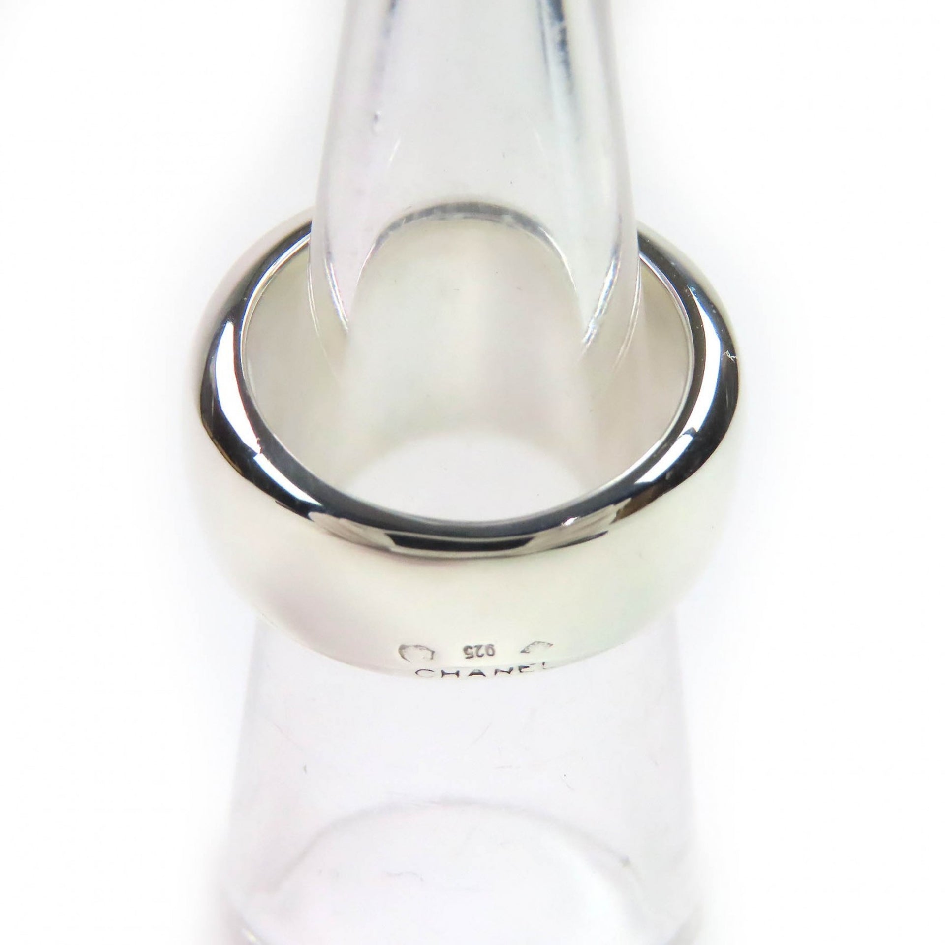 CHANEL SV925 Wide Ring with Logo Engraving, Silver, Approx. Japanese Size, Weight 17.3g, Women\'s