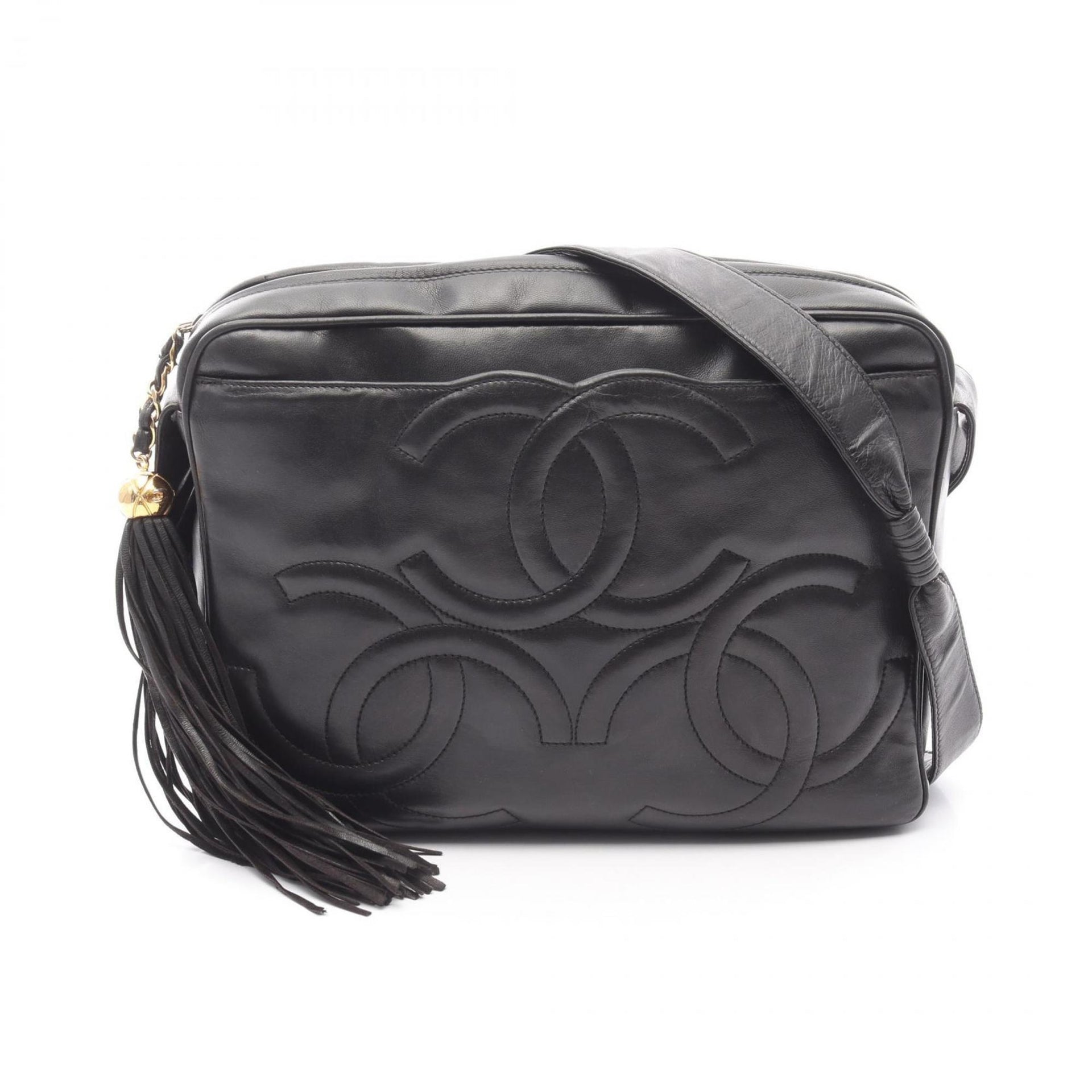 CHANEL Triple Coco Mark Shoulder Bag, Leather, Women\'s, Black
