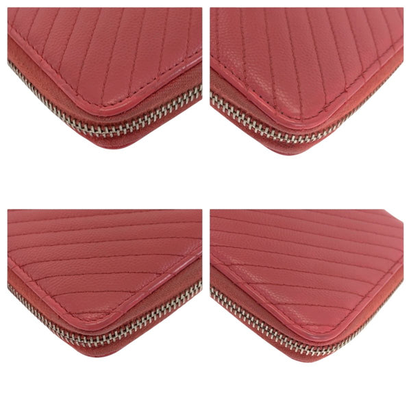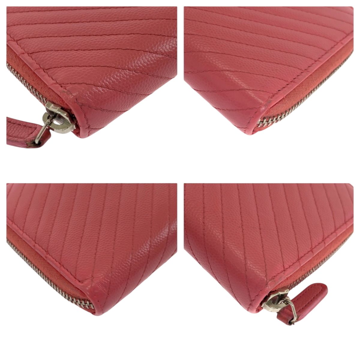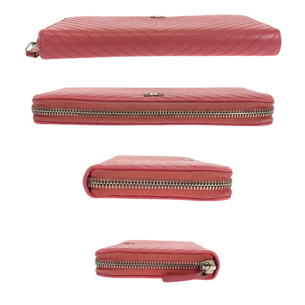 CHANEL V Chevron Stitch Coco Mark Pink Gold Hardware Caviar Skin Long Wallet Round Zipper Women\'s