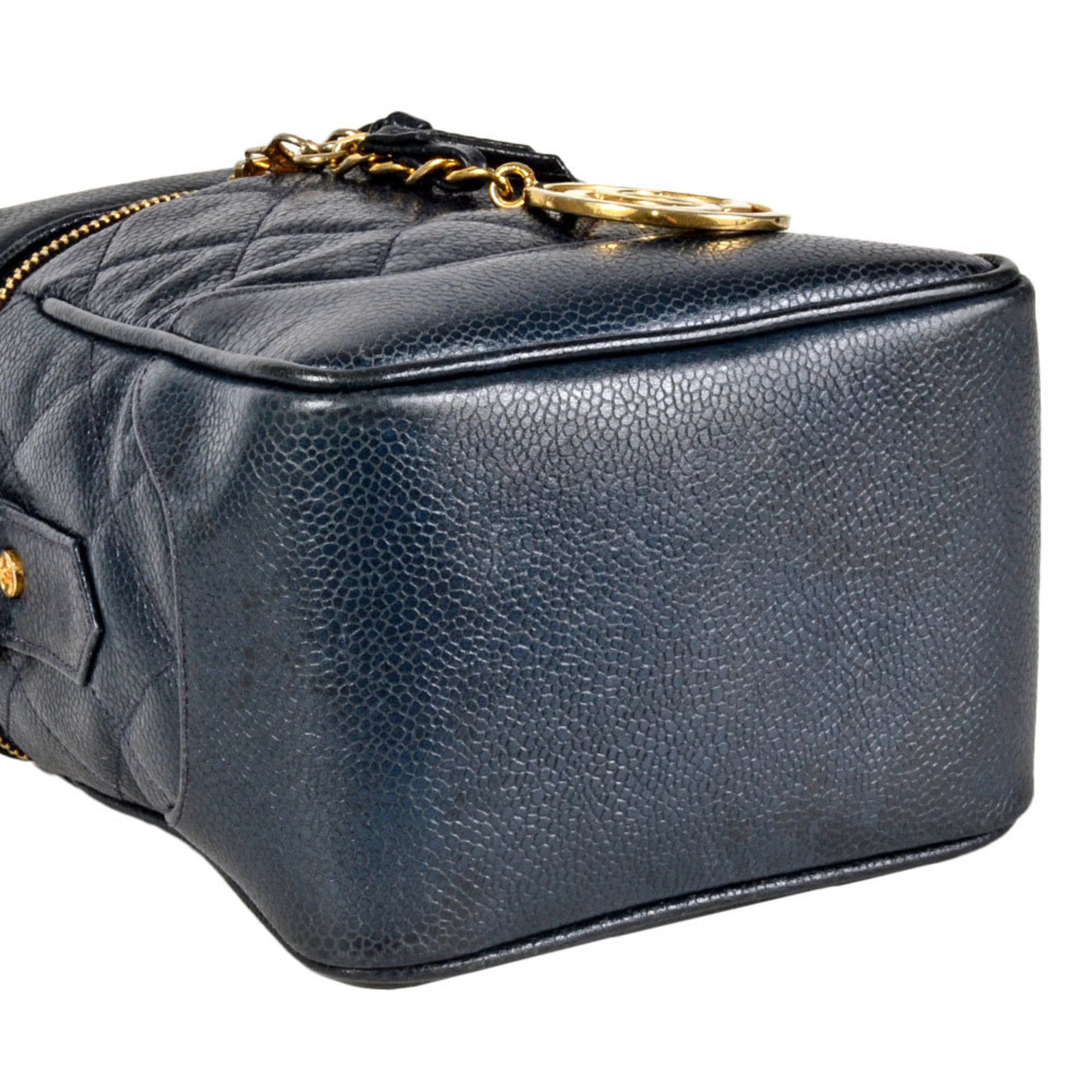 CHANEL Vanity Chain Shoulder Bag Caviar Skin Navy
