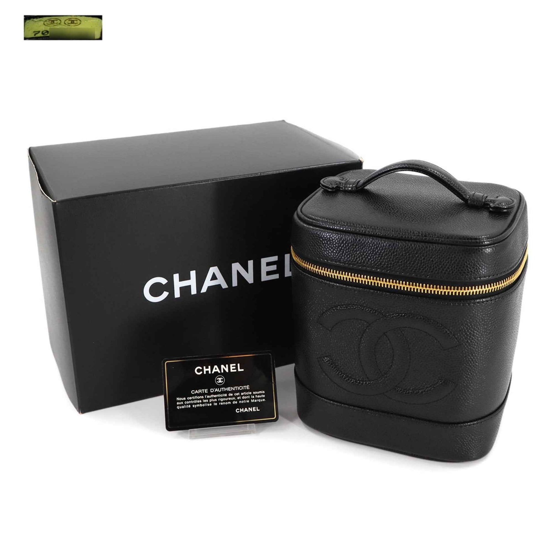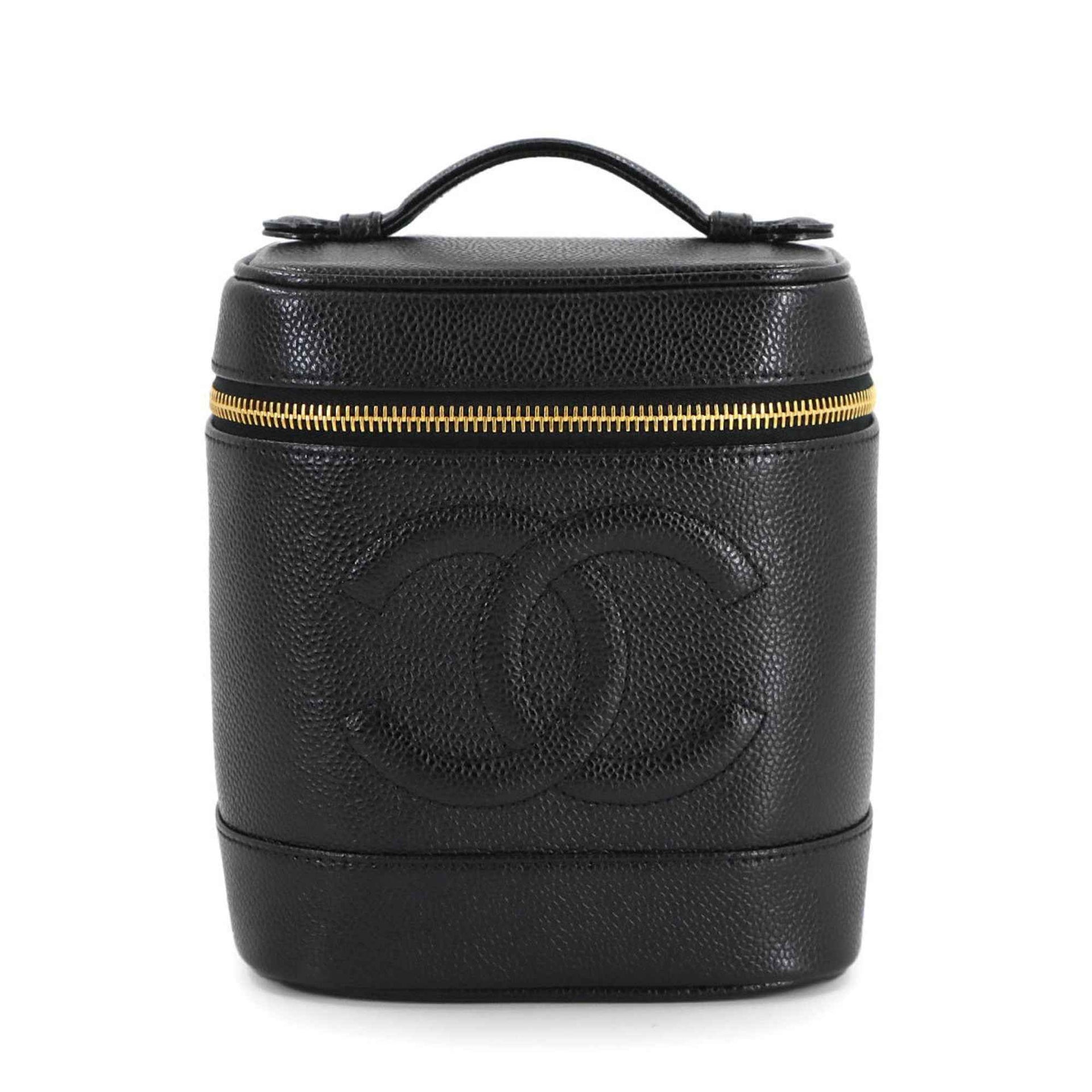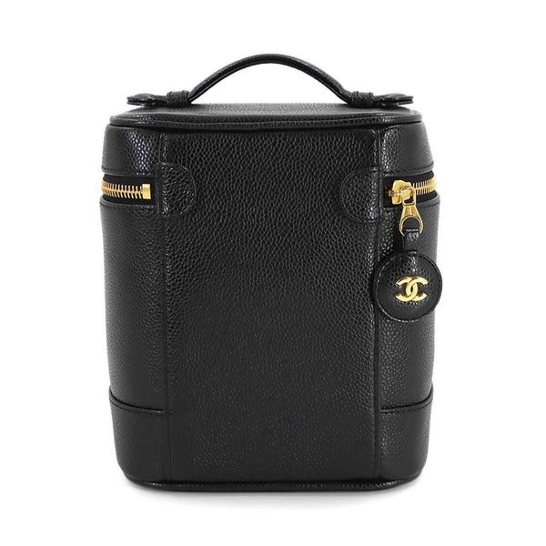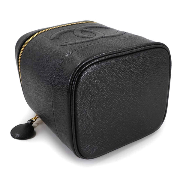 CHANEL Vanity Handbag, Caviar Leather, Black, A01998, Coco Mark, Gold Hardware