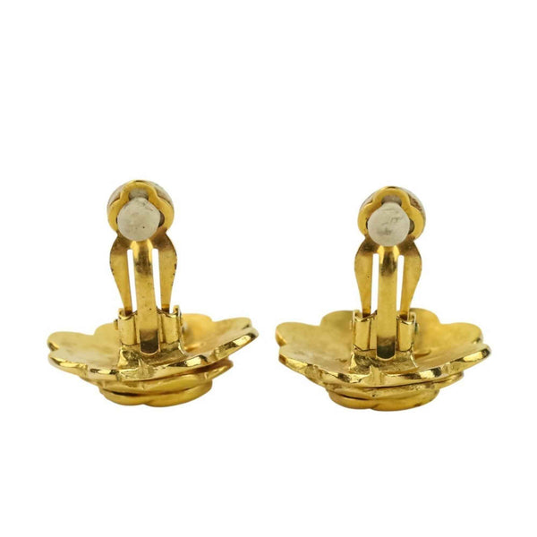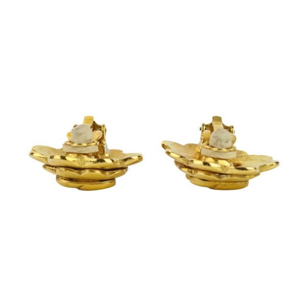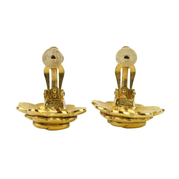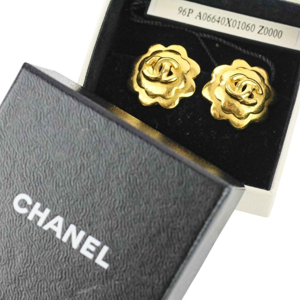CHANEL Vintage Camellia Coco Mark Earrings, Gold, Women\'s