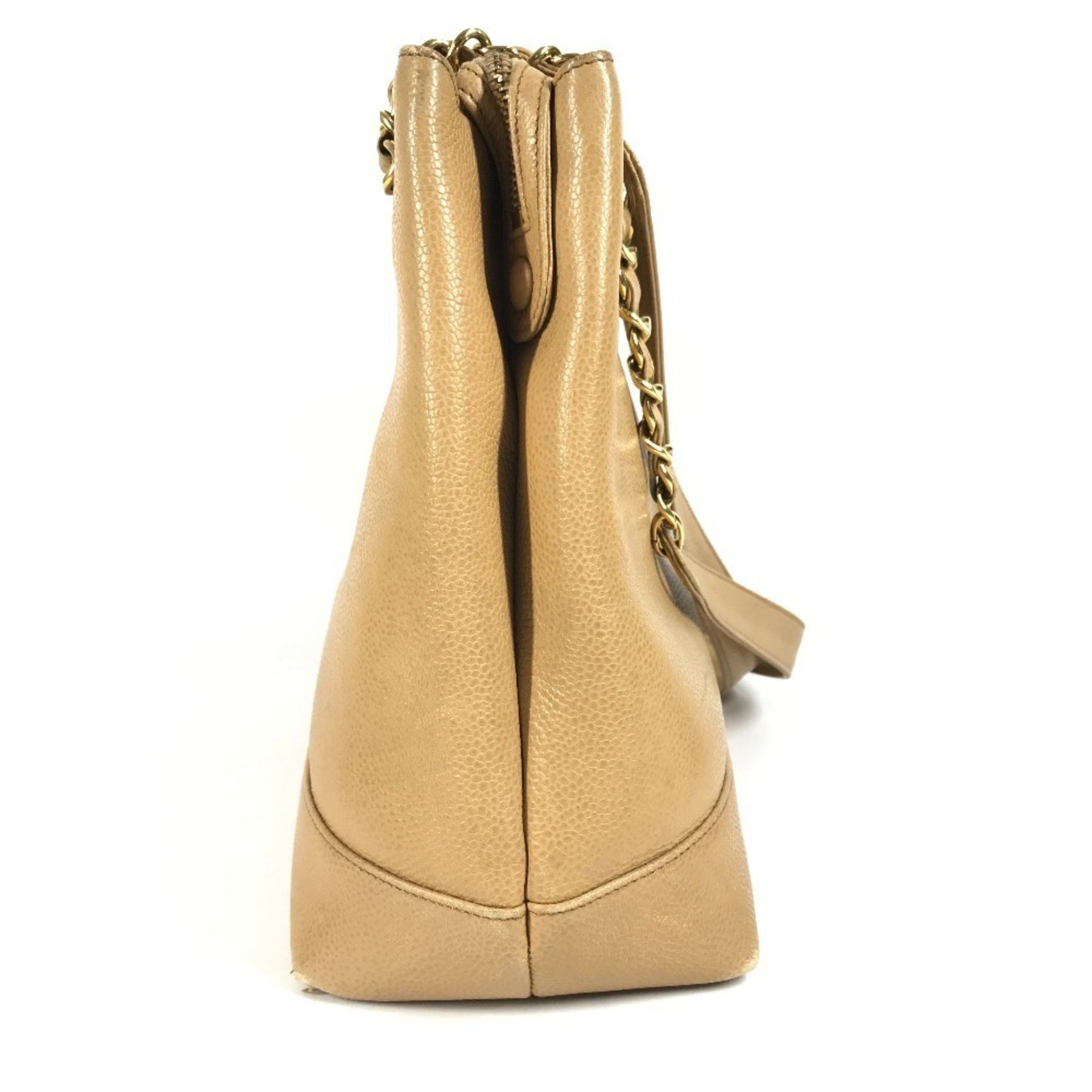 CHANEL Vintage CC Coco Mark Ball Shoulder Tote Bag, Chain Caviar Leather, Beige