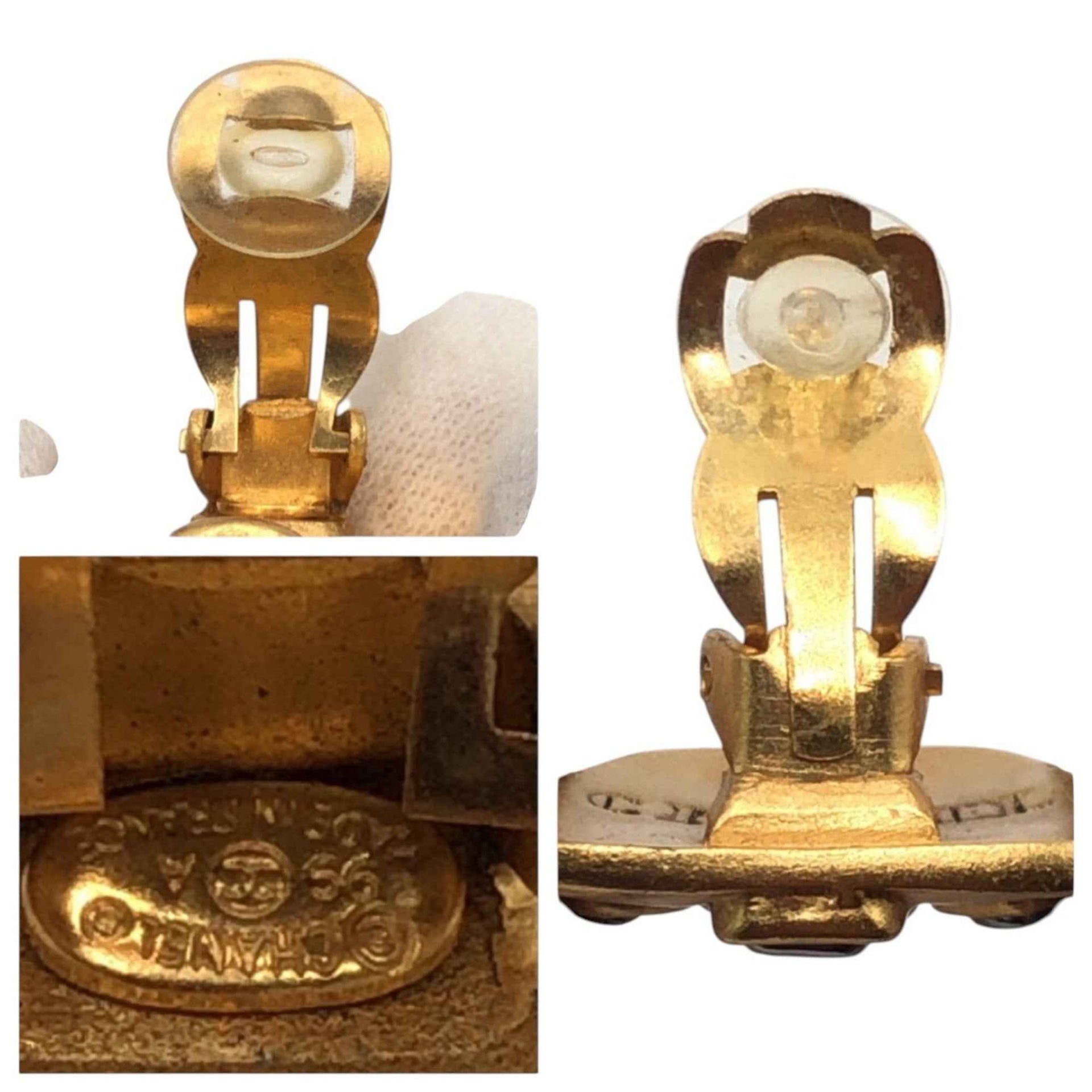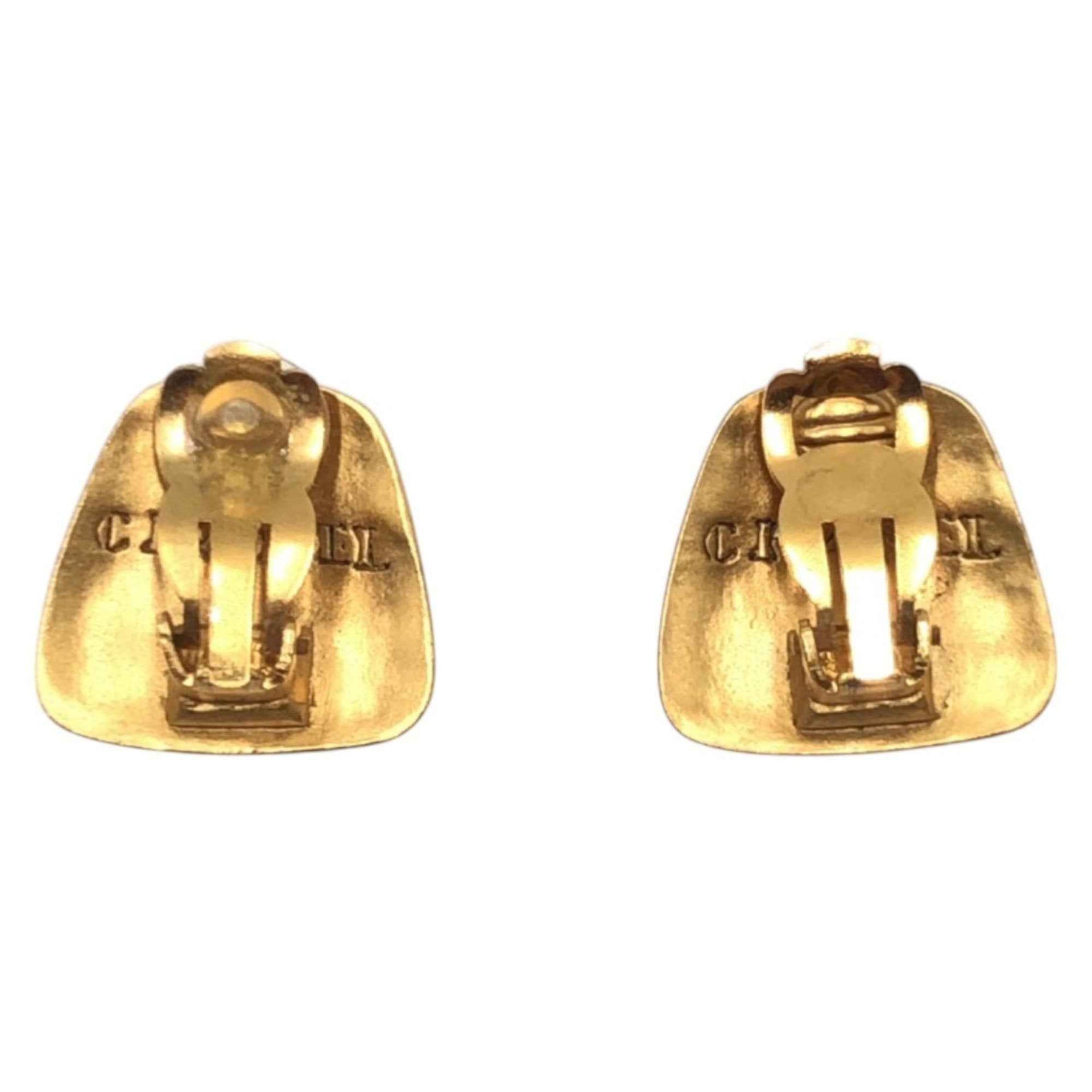 CHANEL Vintage Coco Mark Gripoa Gold Metal Earrings for Women