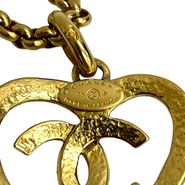 CHANEL Vintage Coco Mark Heart Motif GP Necklace Gold 21985
