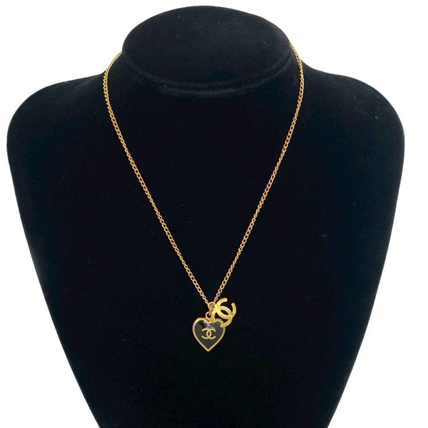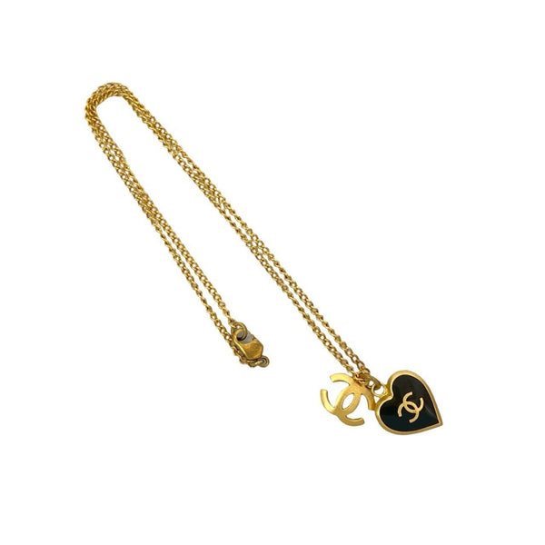 CHANEL Vintage Coco Mark Heart Motif Necklace Pendant Gold 61241