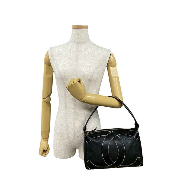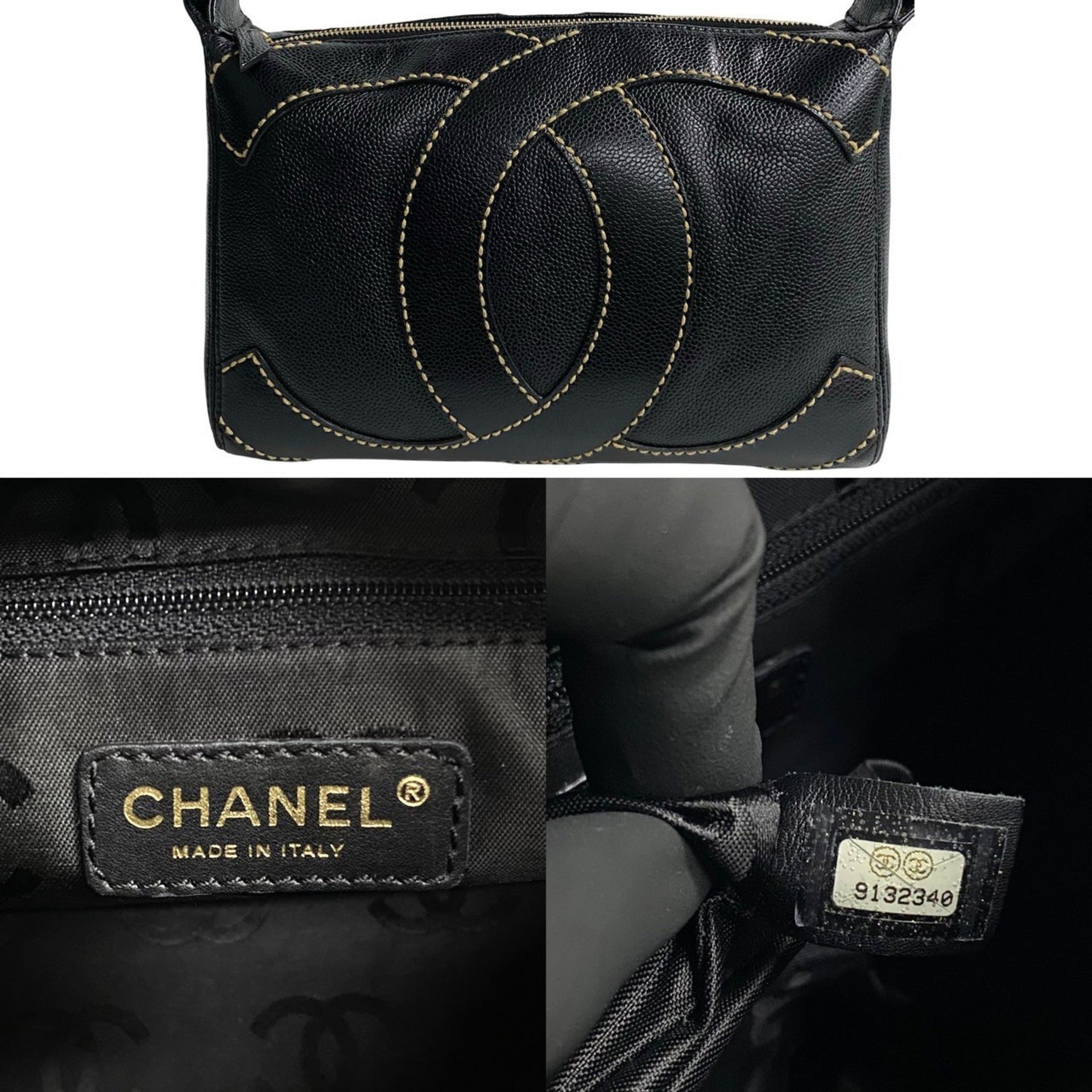 CHANEL Wild Stitch Coco Mark Caviar Leather Handbag in Black 47526