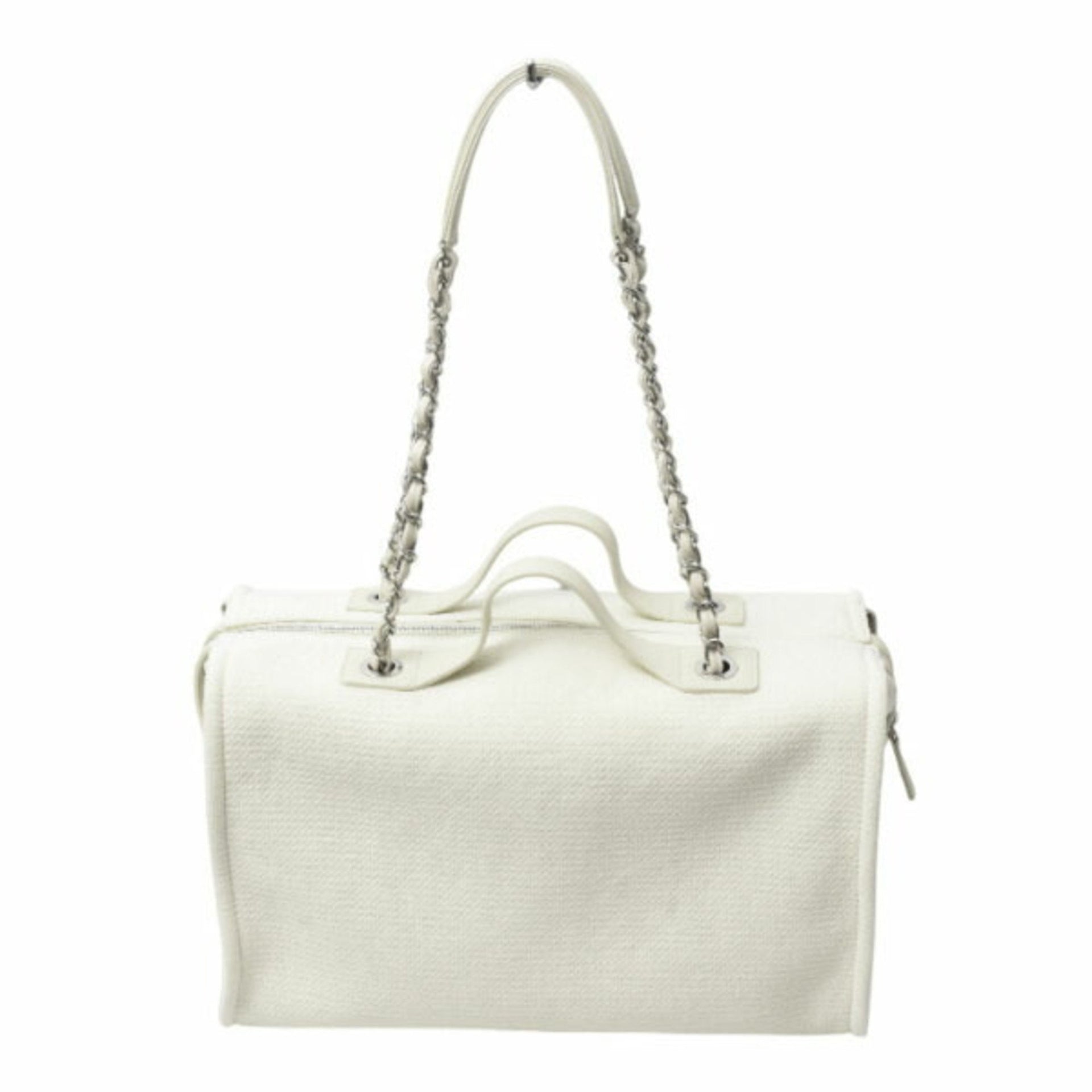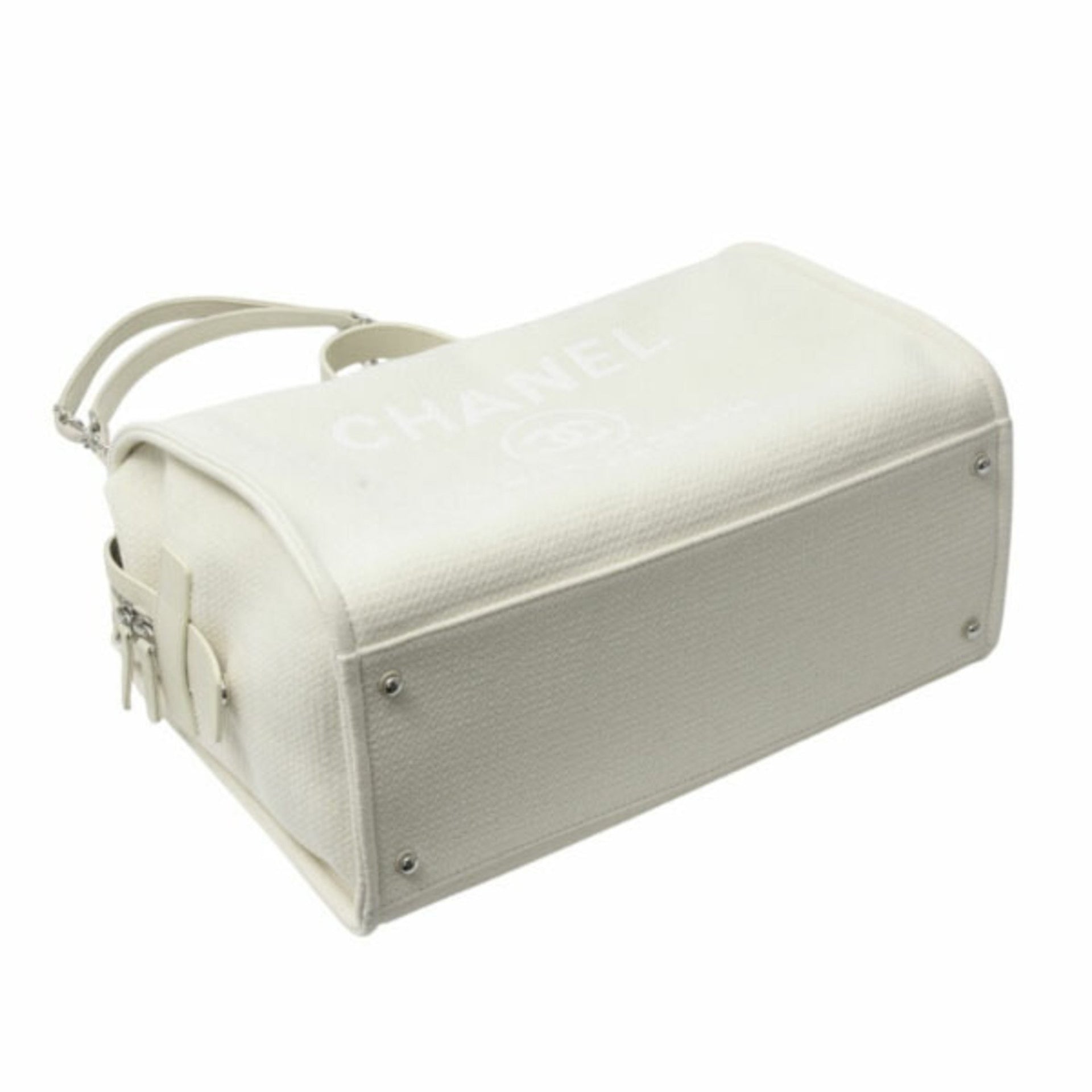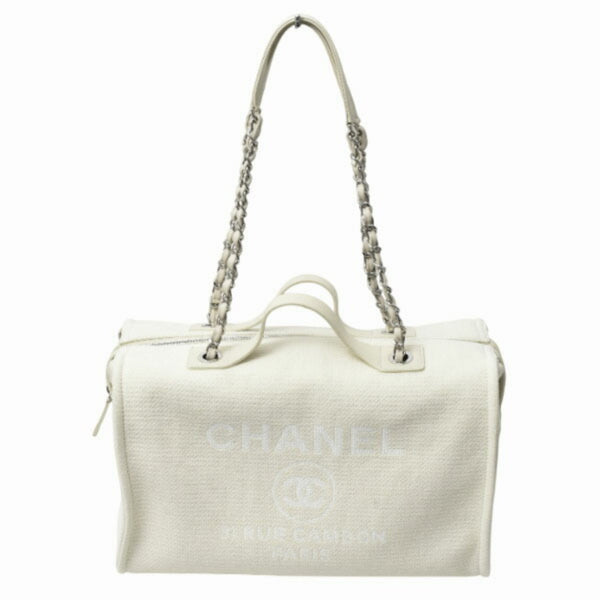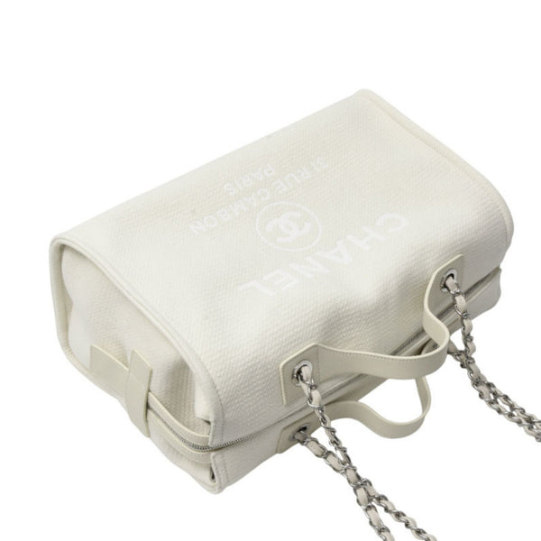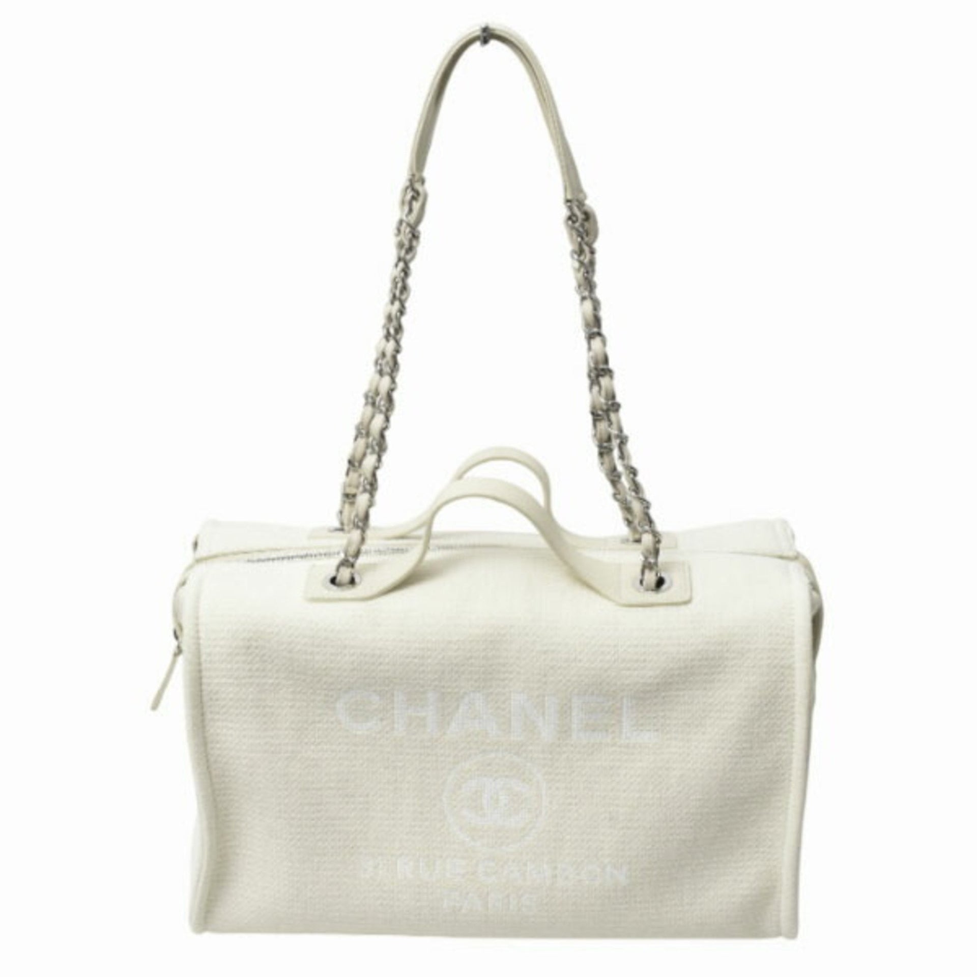 Chanel Women\'s Deauville Boston Bag Shoulder Canvas Leather Ivory CHANEL