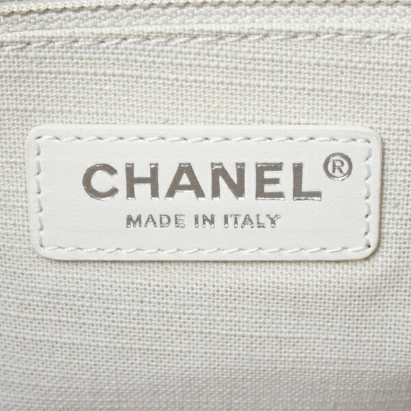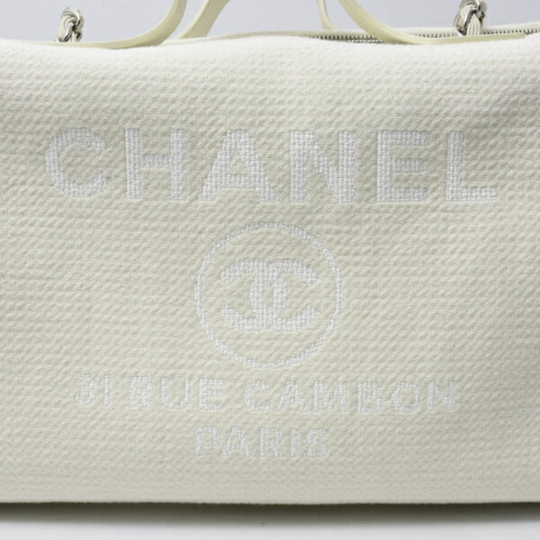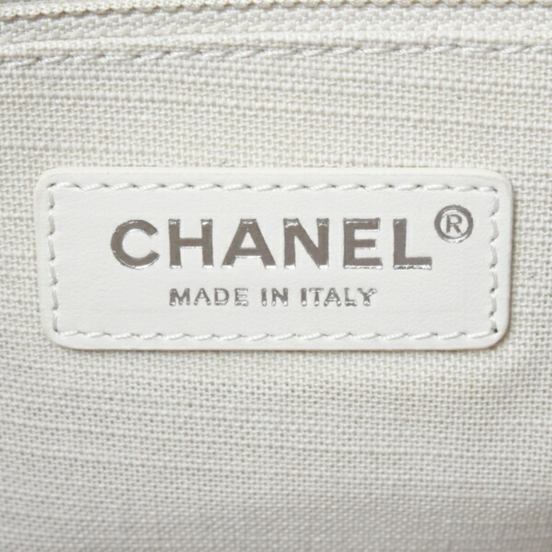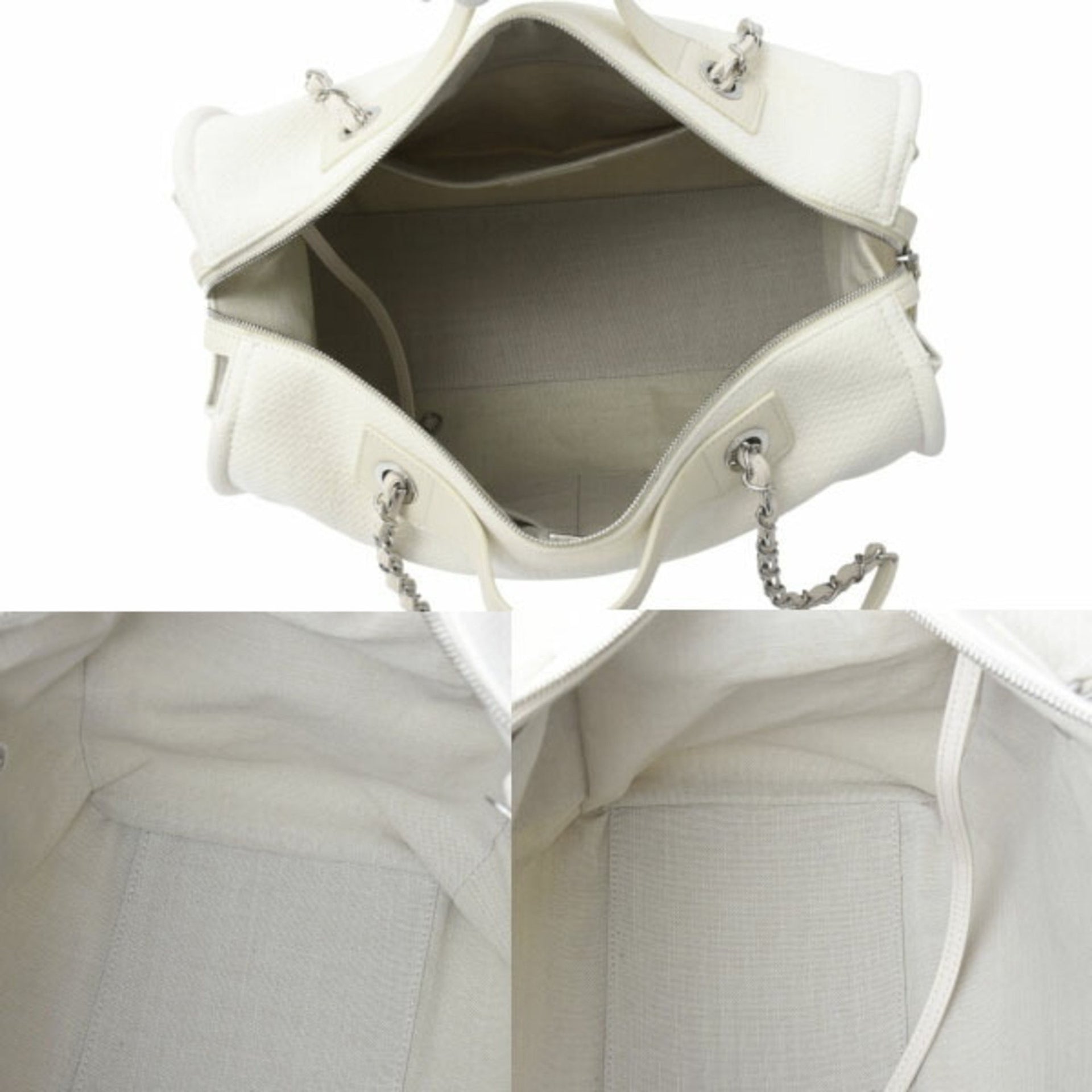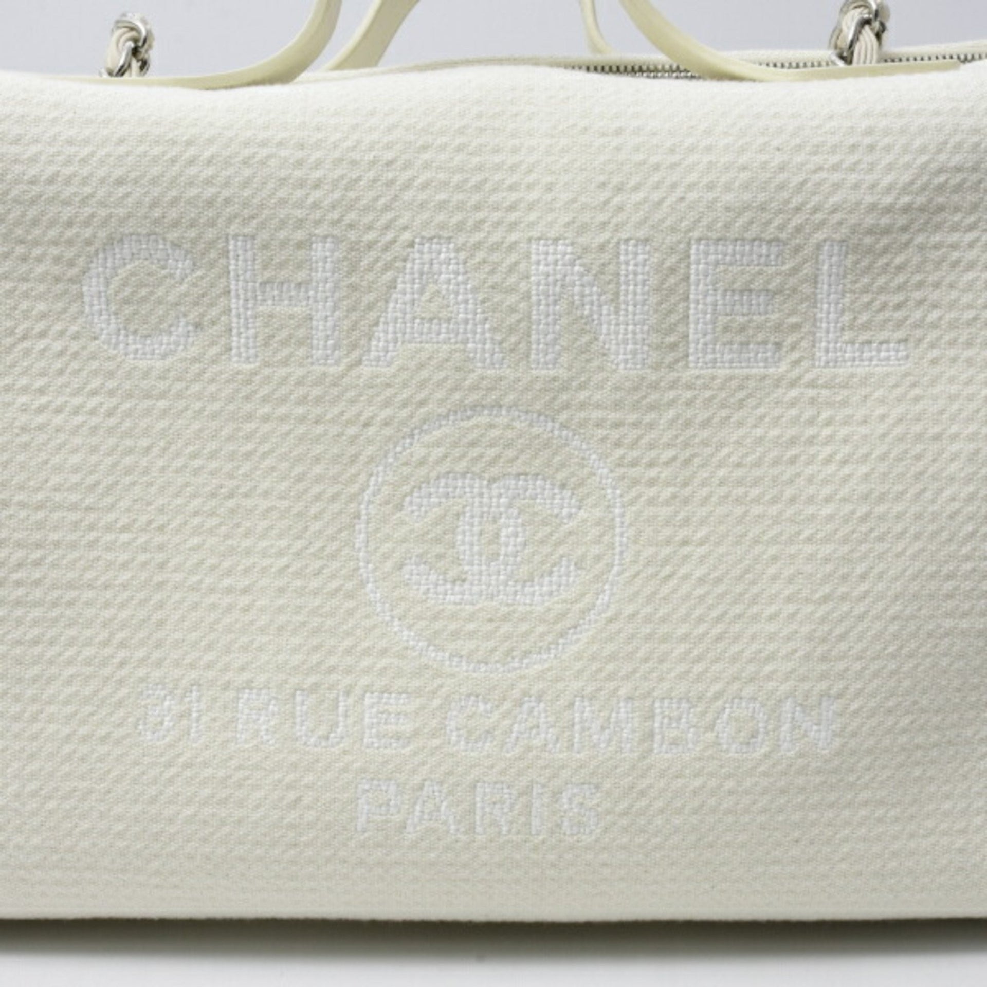Chanel Women\'s Deauville Boston Bag Shoulder Canvas Leather Ivory CHANEL