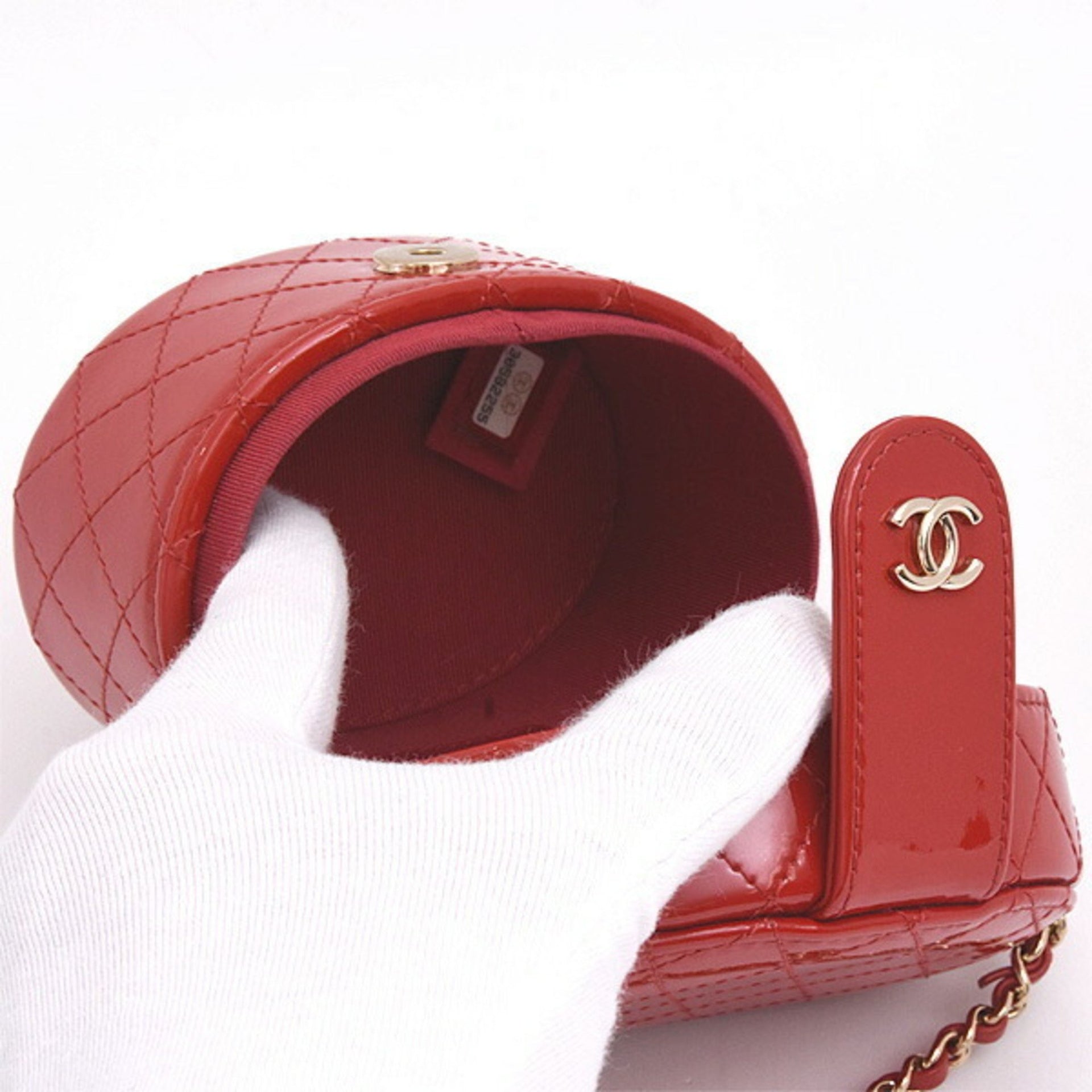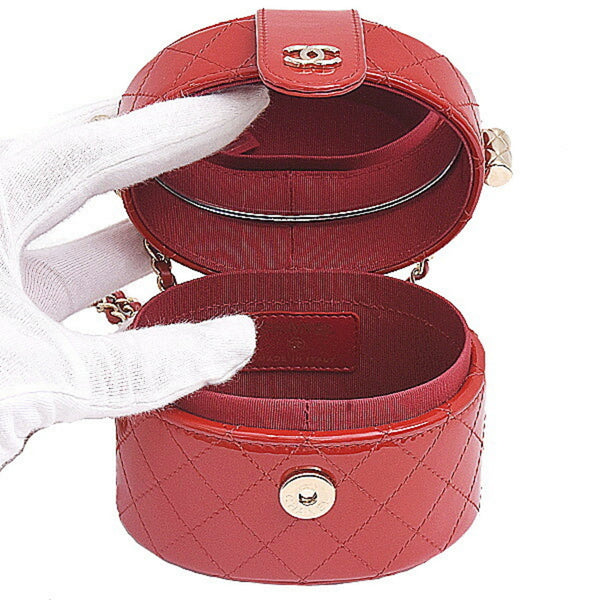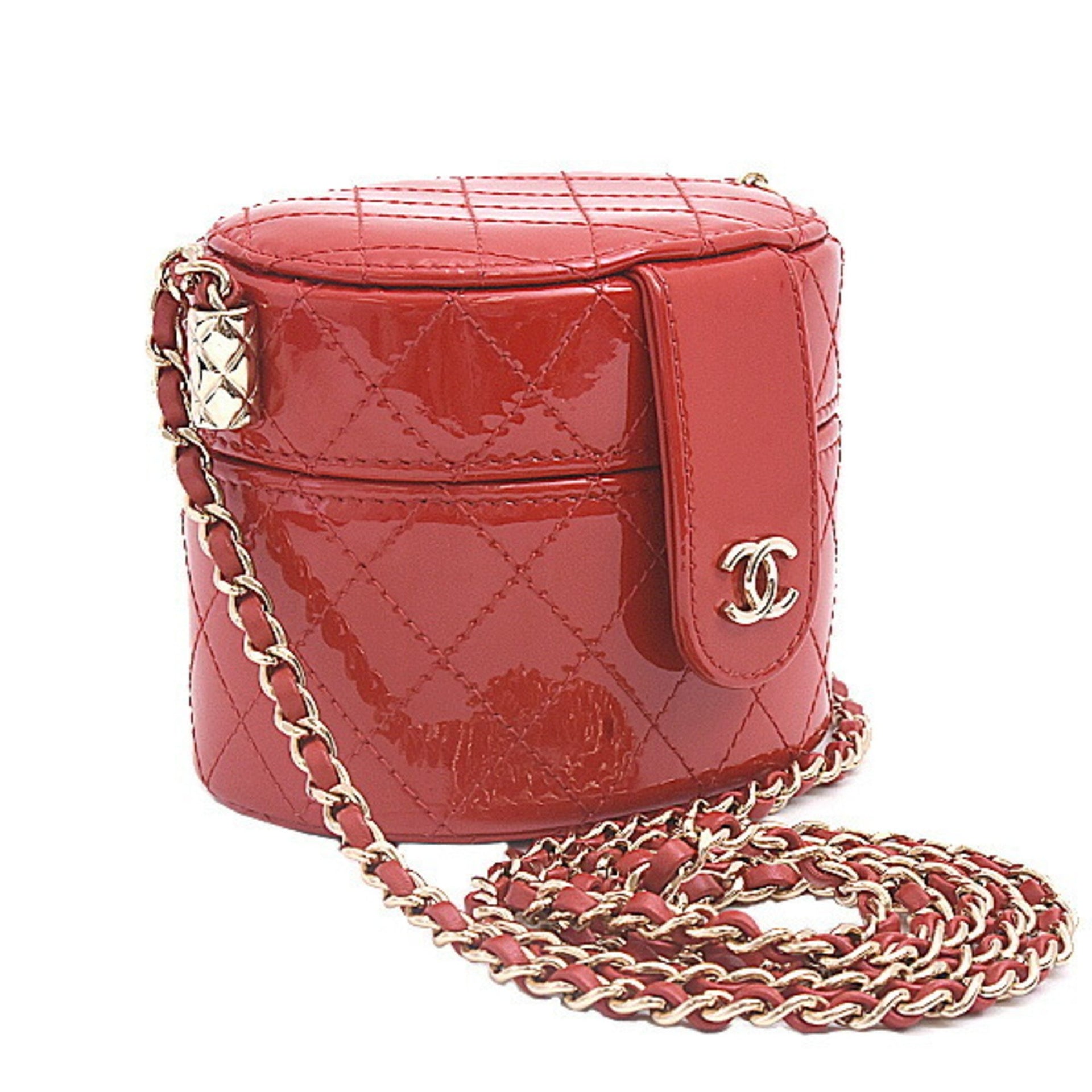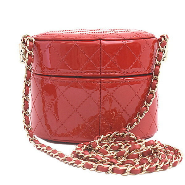 Chanel Women\'s Matelasse Mini Chain Shoulder Bag Vanity Patent Leather Red CHANEL AP1573